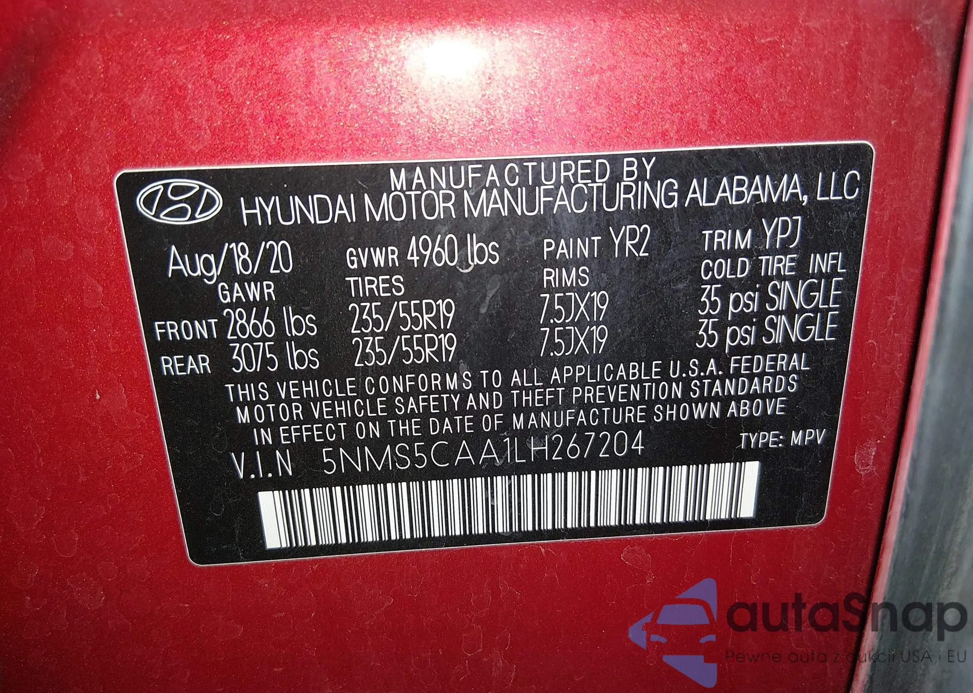 • VIN 5NMS5CAA1LH267204