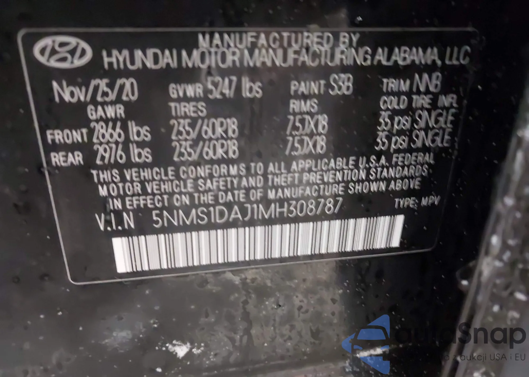 • VIN 5NMS1DAJ1MH308787