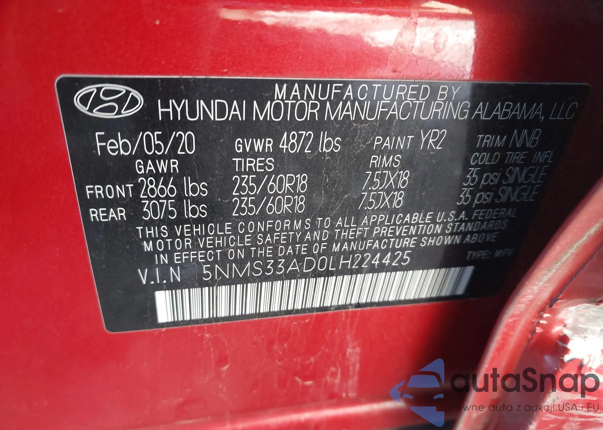 • VIN 5NMS33AD0LH224425
