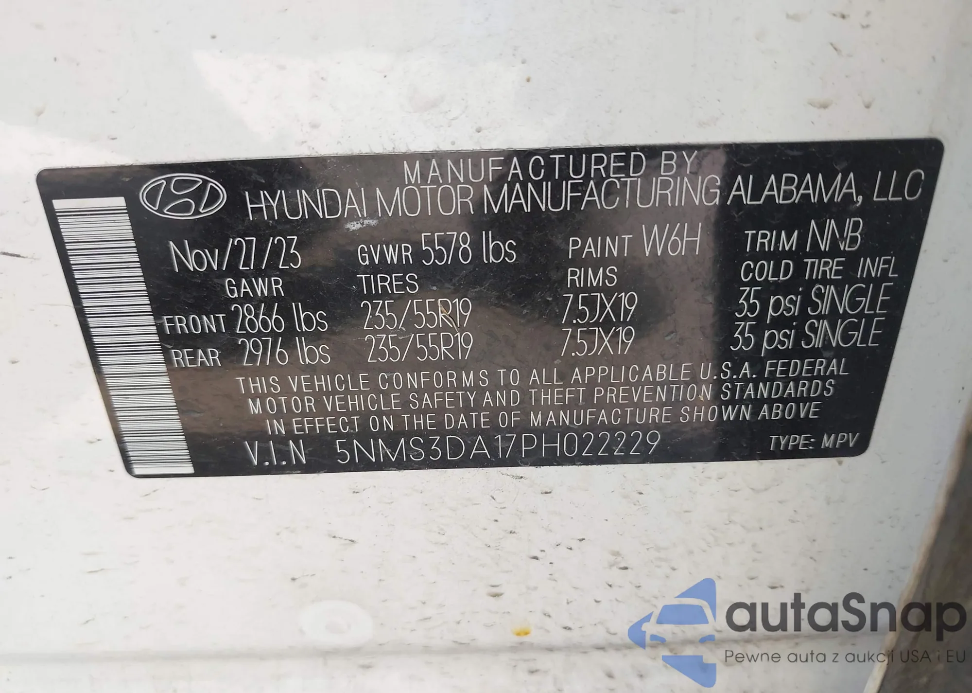 • VIN 5NMS3DA17PH022229