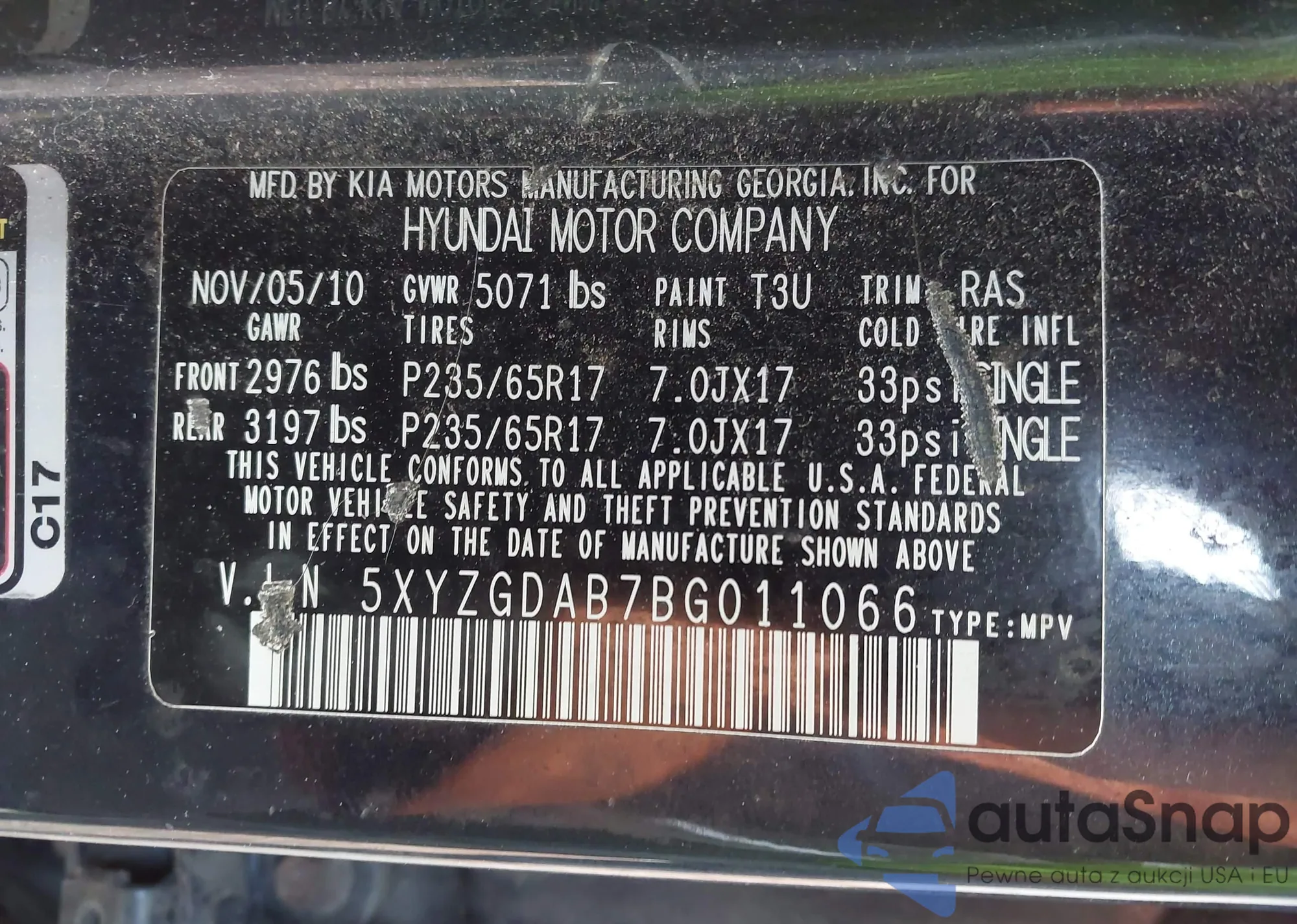 • VIN 5XYZGDAB7BG011066