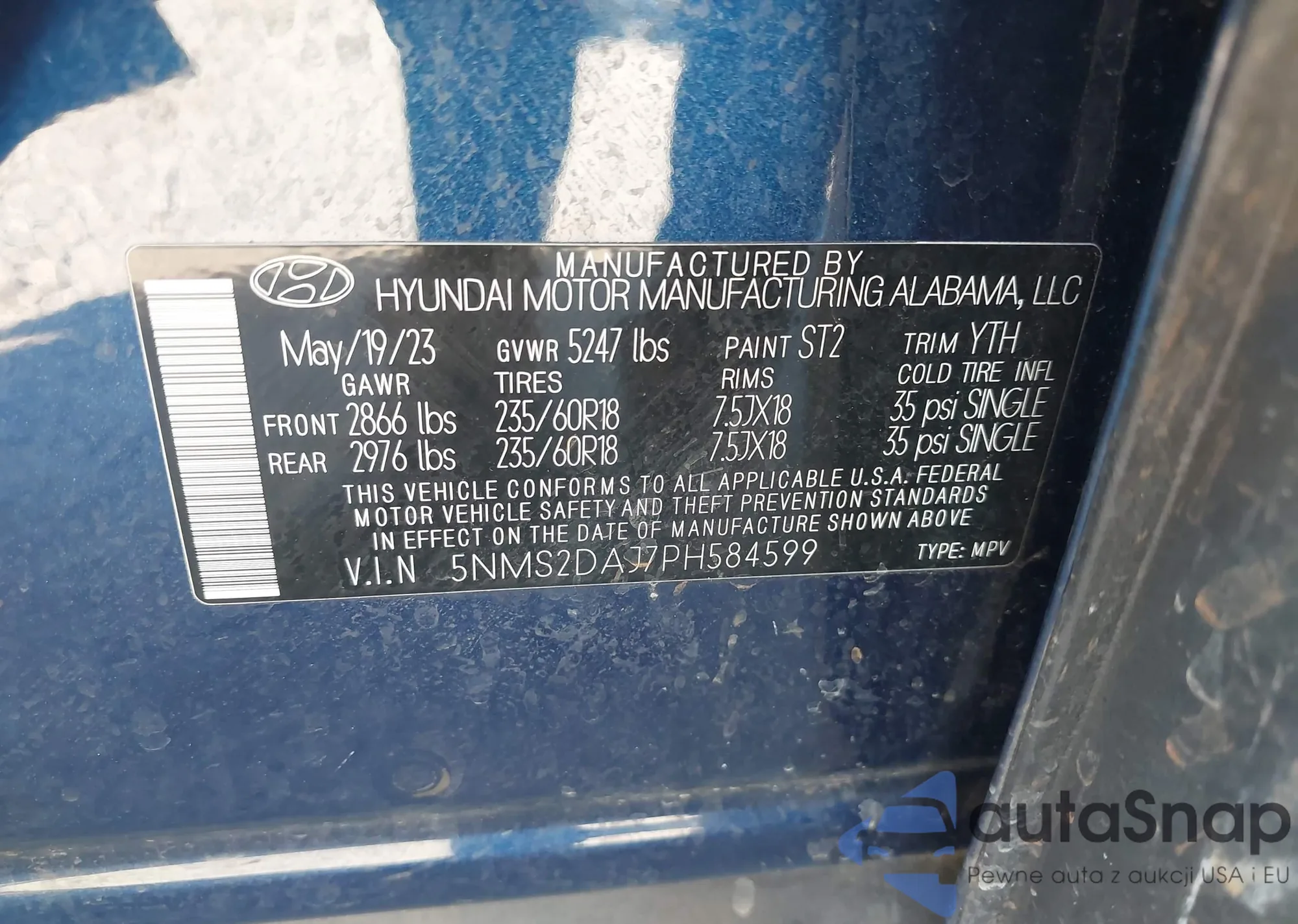 • VIN 5NMS2DAJ7PH584599