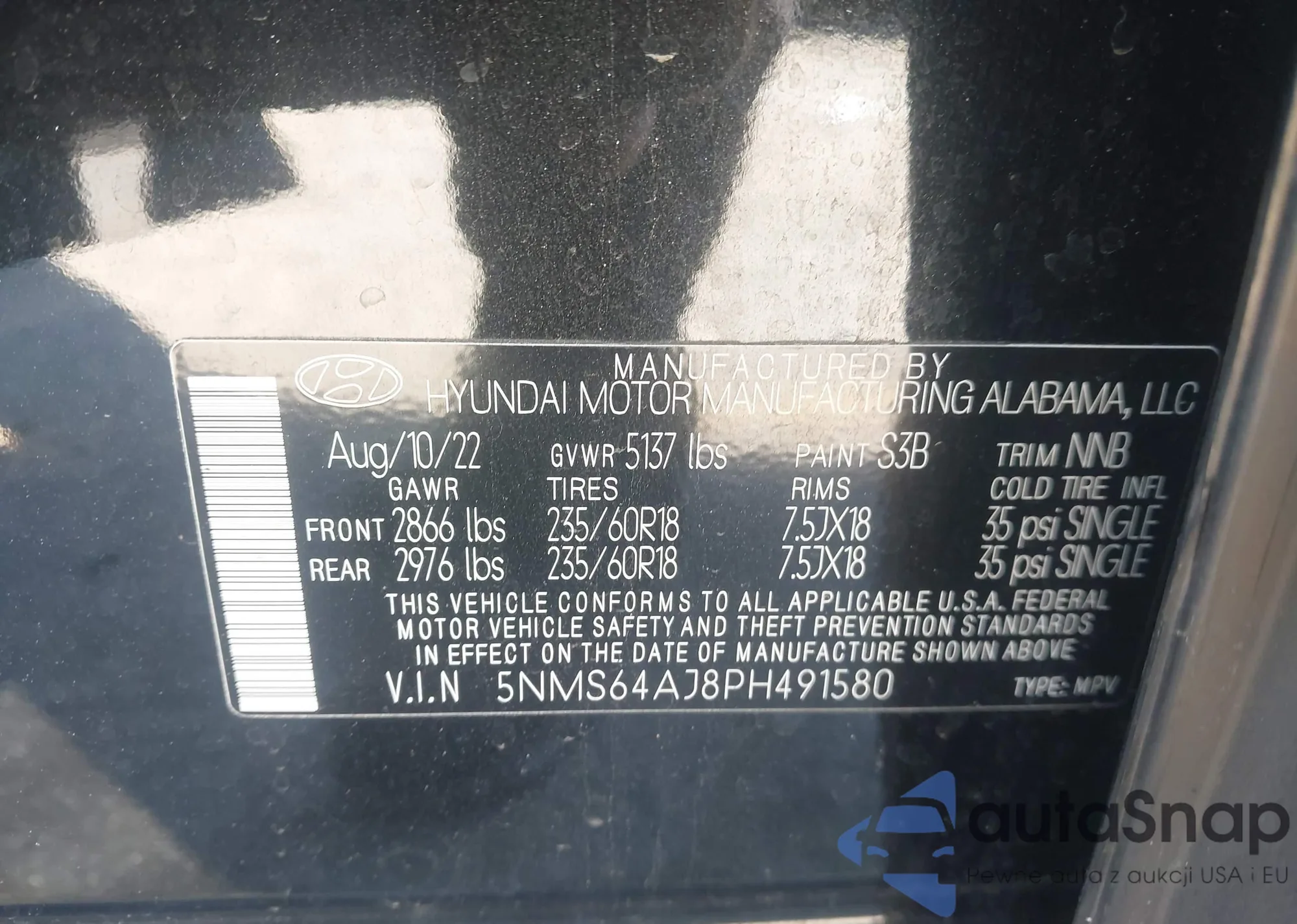 • VIN 5NMS64AJ8PH491580