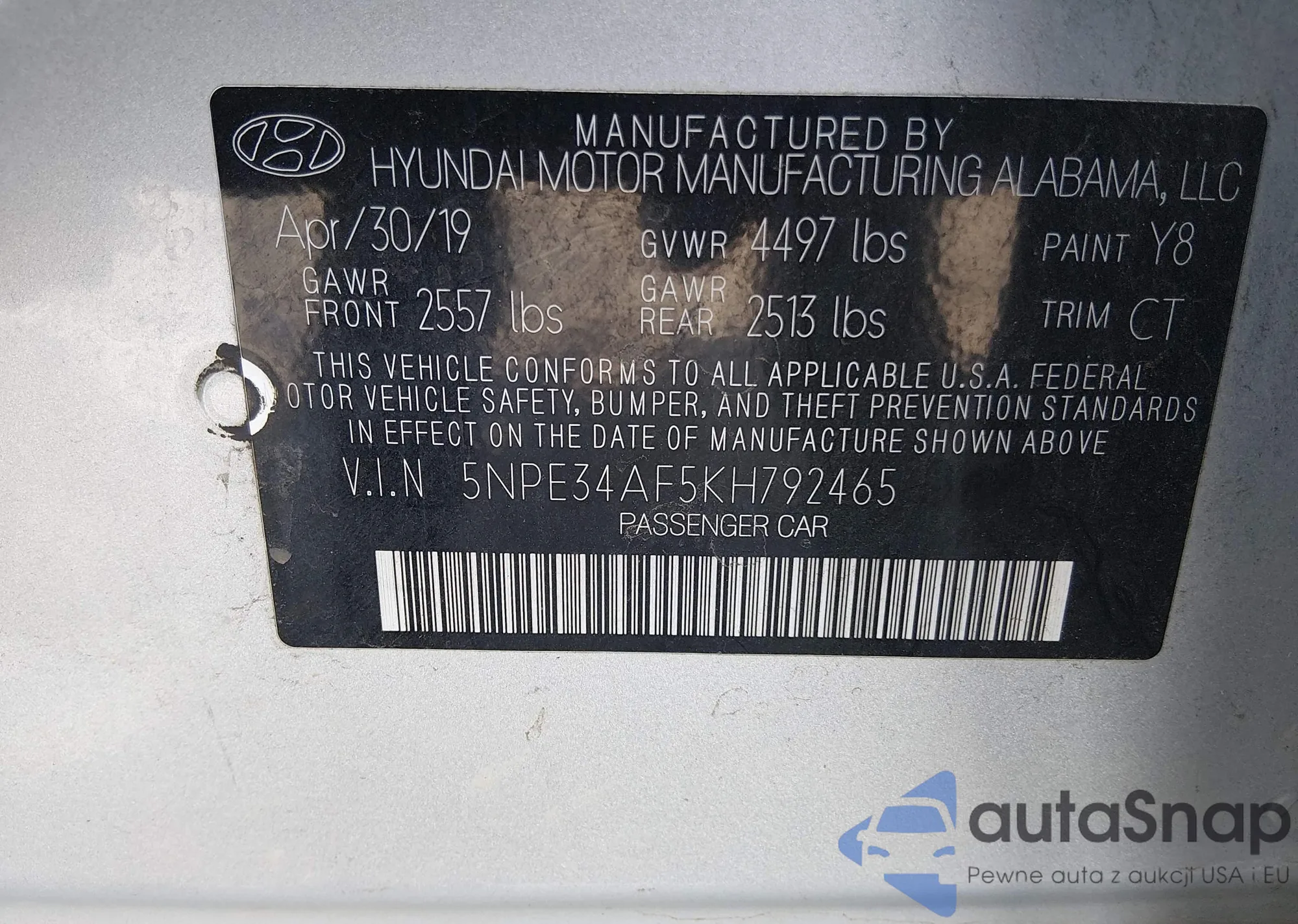 • VIN 5NPE34AF5KH792465