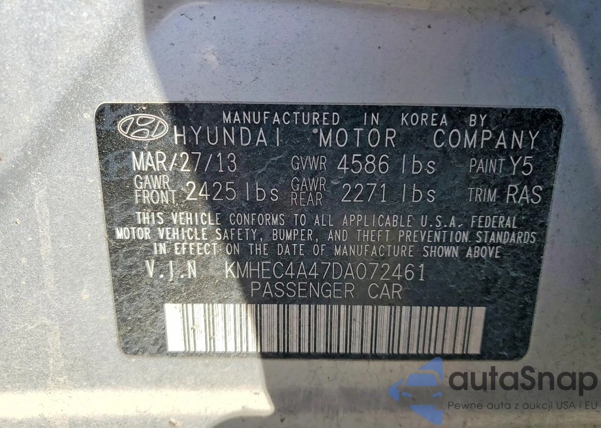 • VIN KMHEC4A47DA072461