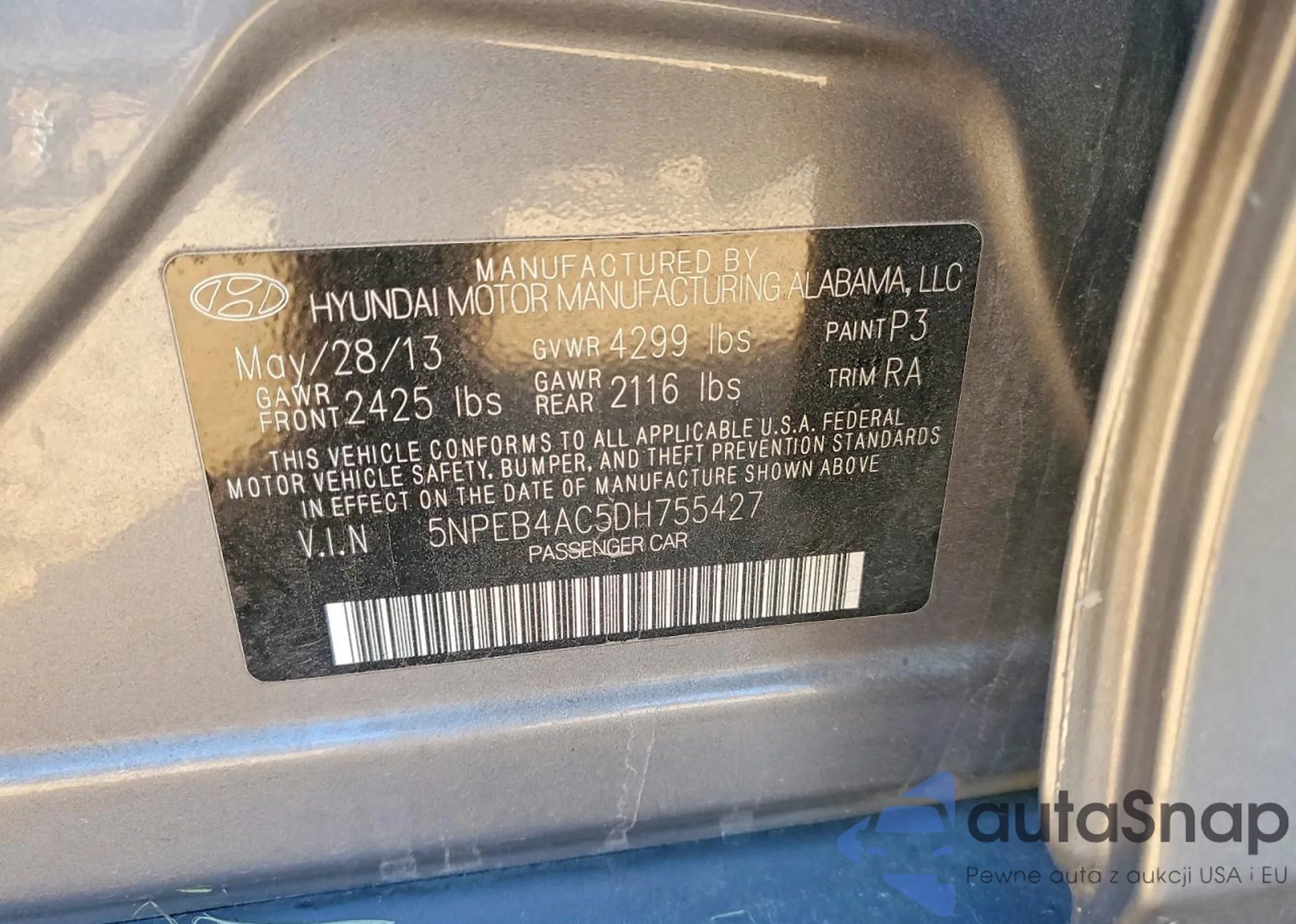 • VIN 5NPEB4AC5DH755427