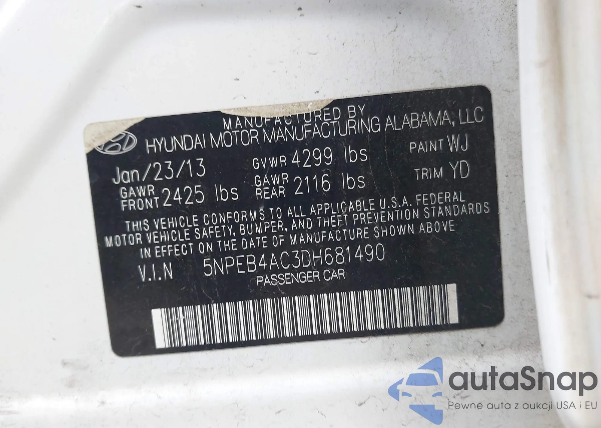 • VIN 5NPEB4AC3DH681490