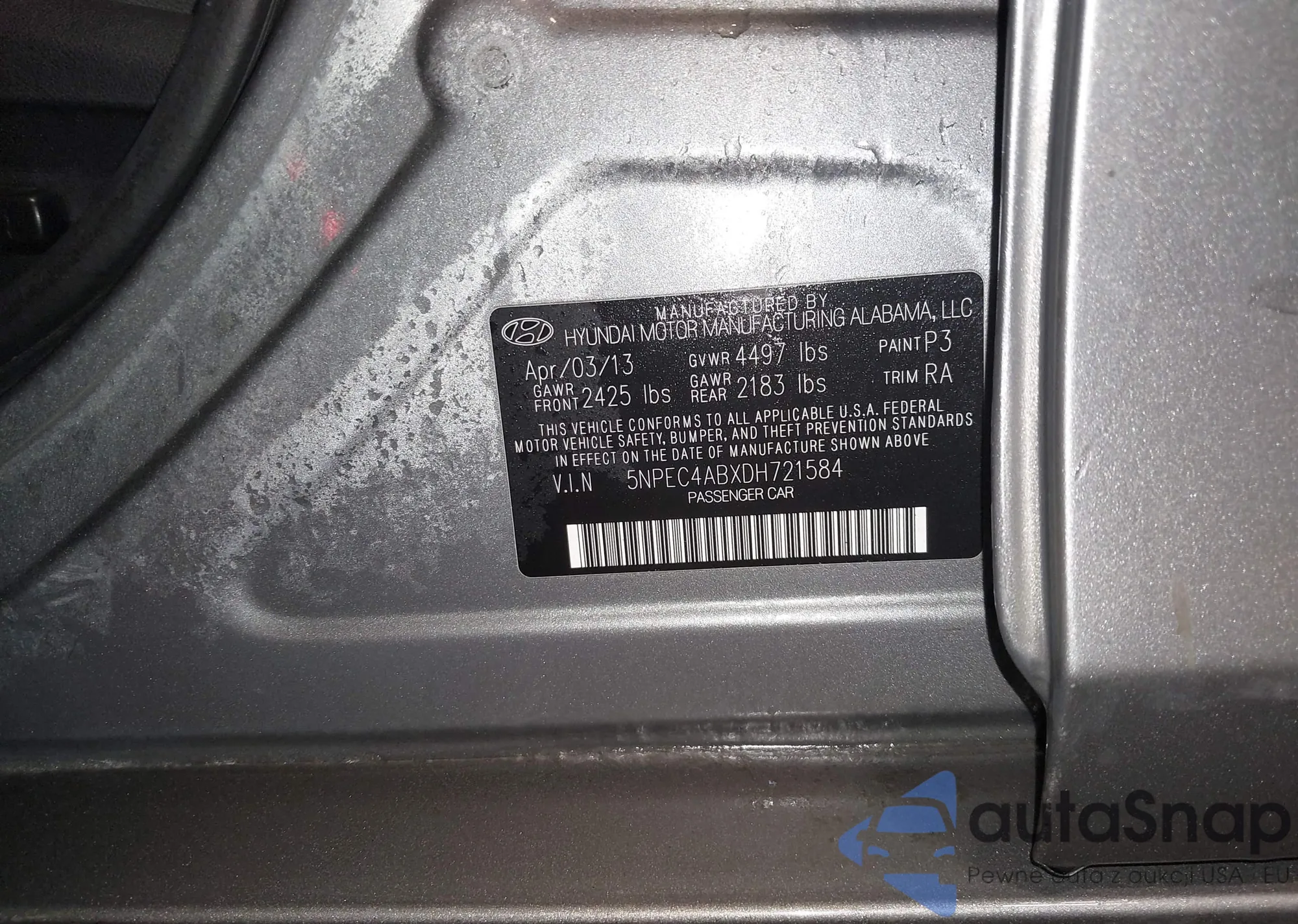 • VIN 5NPEB4AC5DH518050