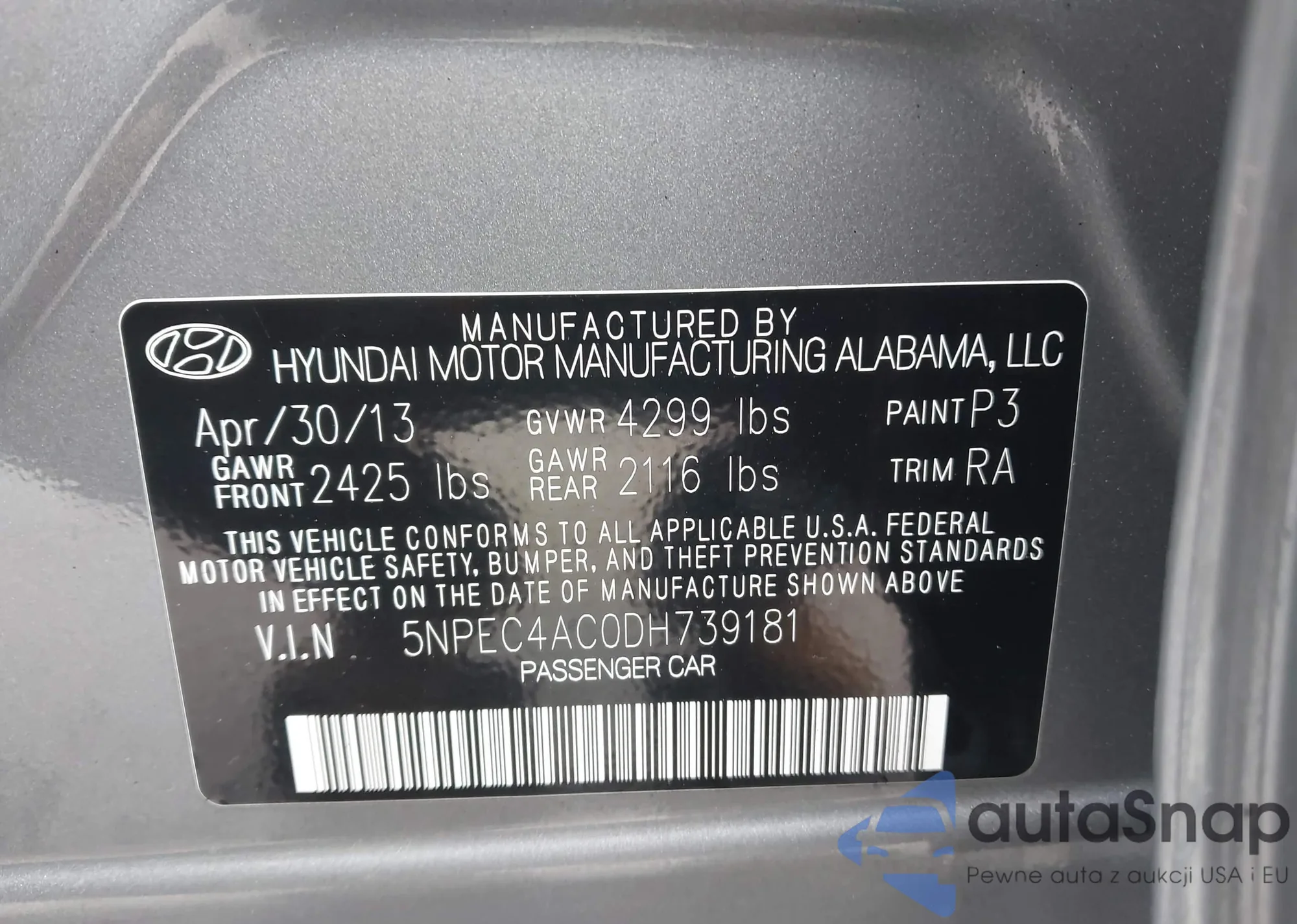 • VIN 5NPEC4AC0DH739181