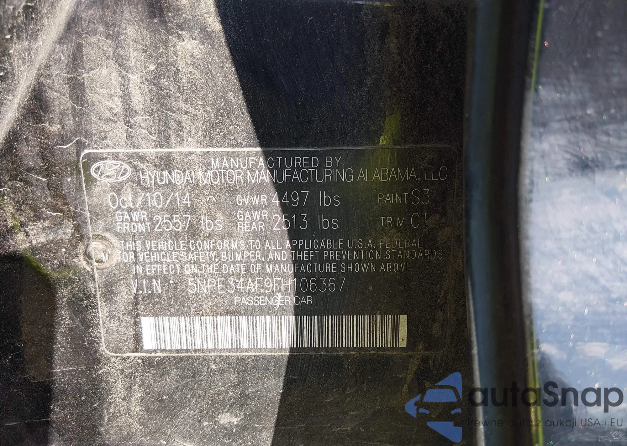 LOT: 44391926 VIN: 5NPE34AF9FH106367