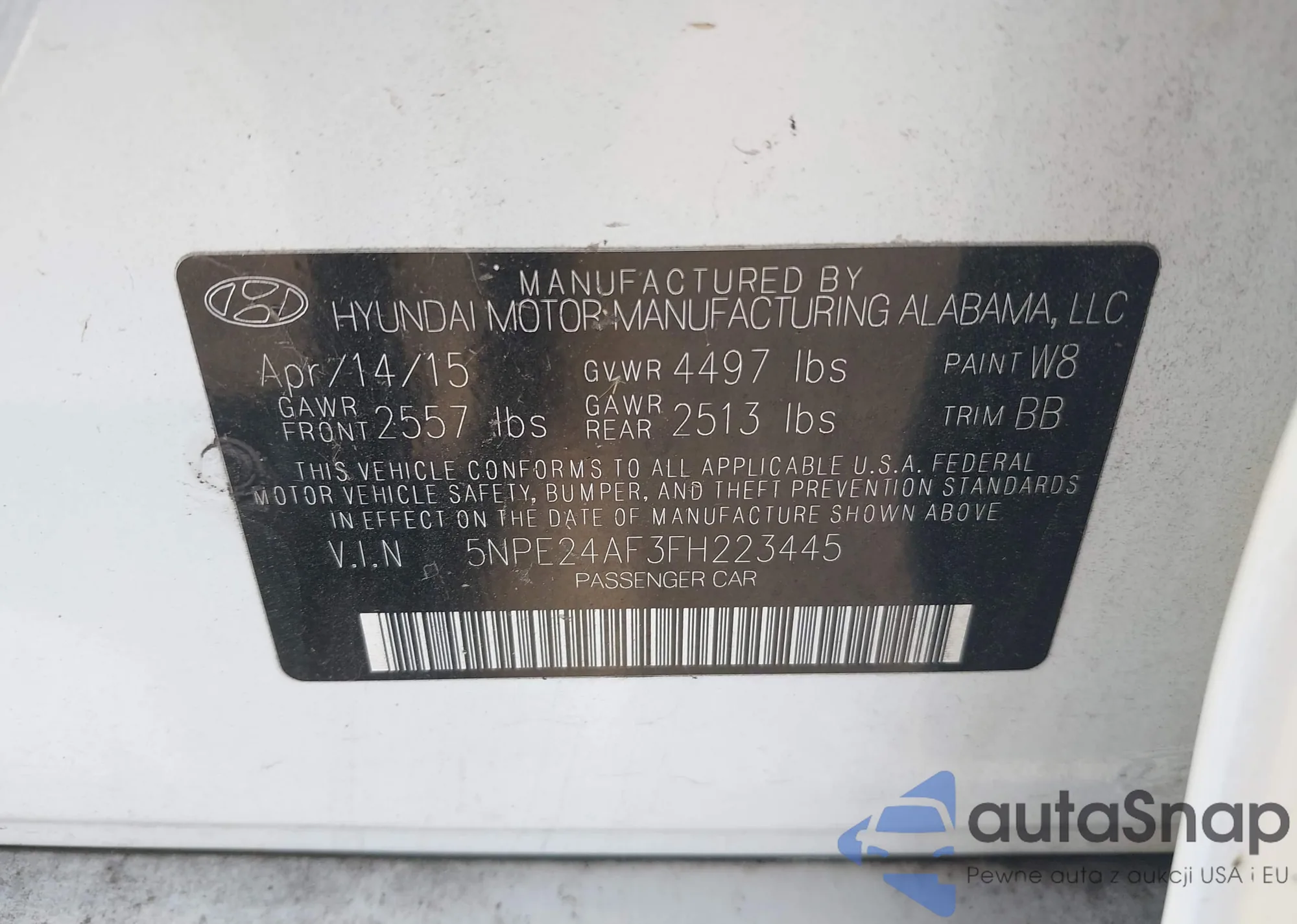 • VIN 5NPE24AF3FH223445