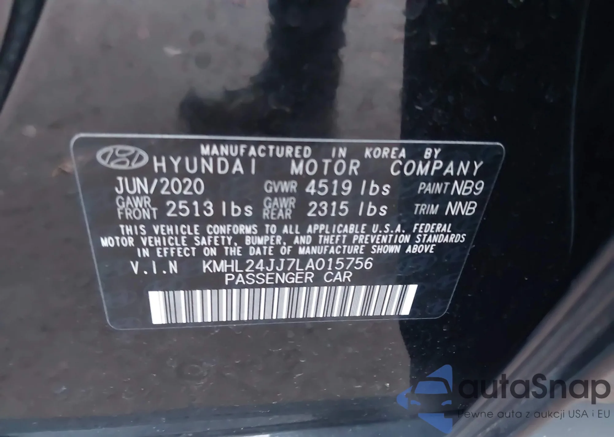 • VIN KMHL24JJ7LA015756