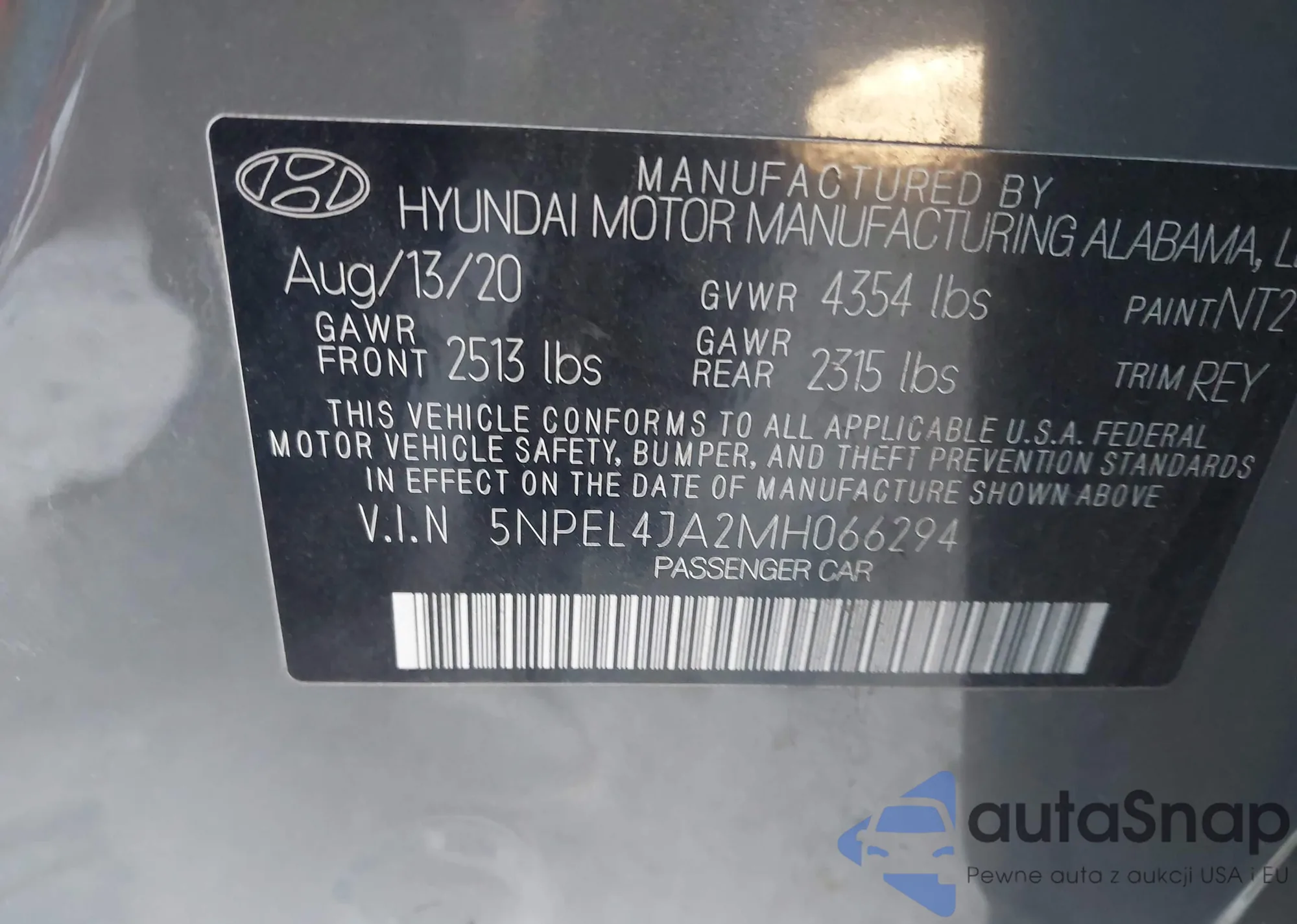 • VIN 5NPEL4JA2MH066294