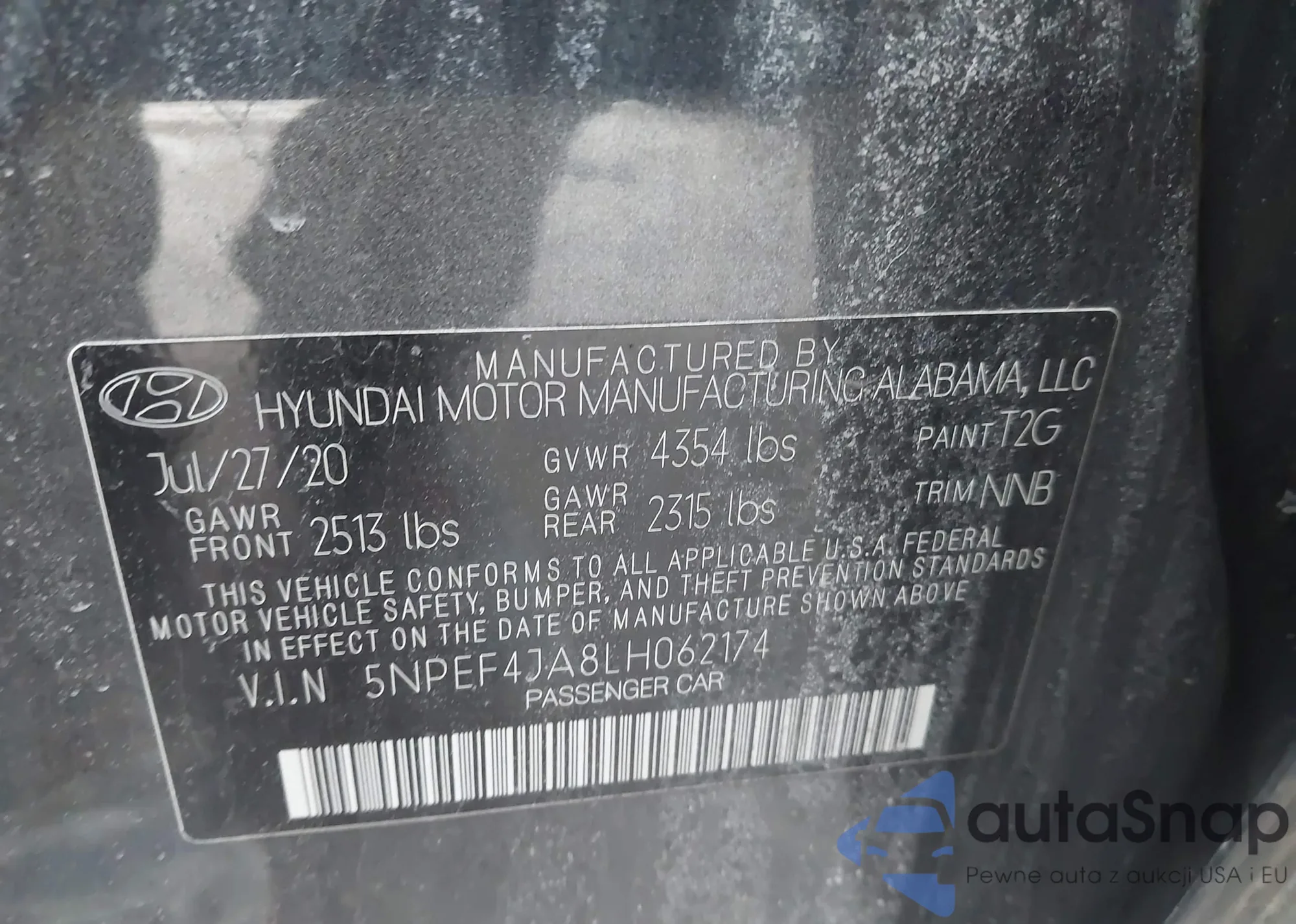 • VIN 5NPEF4JA8LH062174