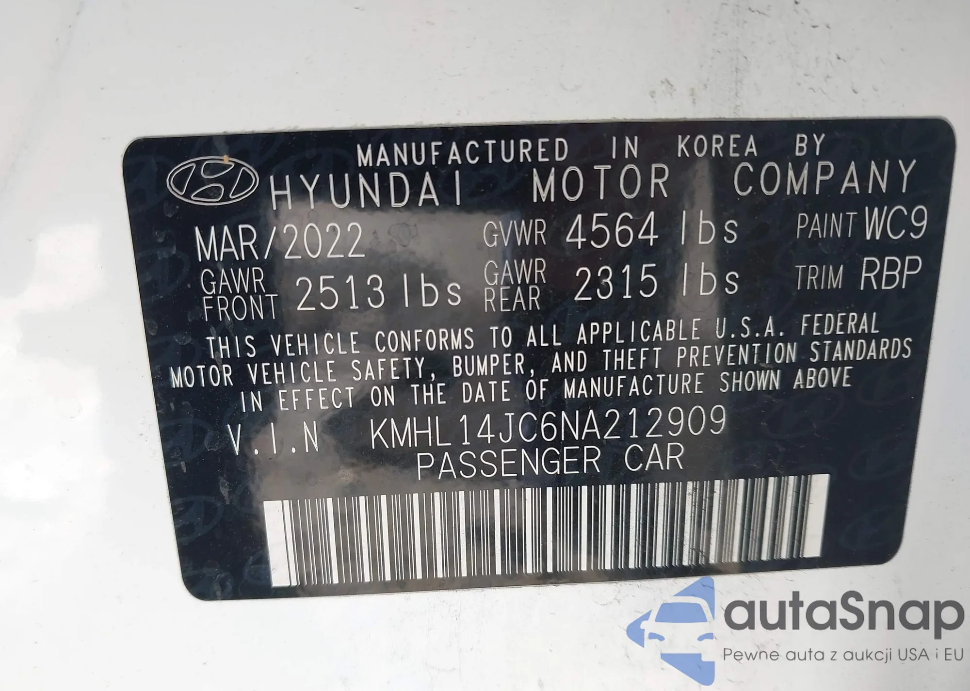 • VIN KMHL14JC6NA212909