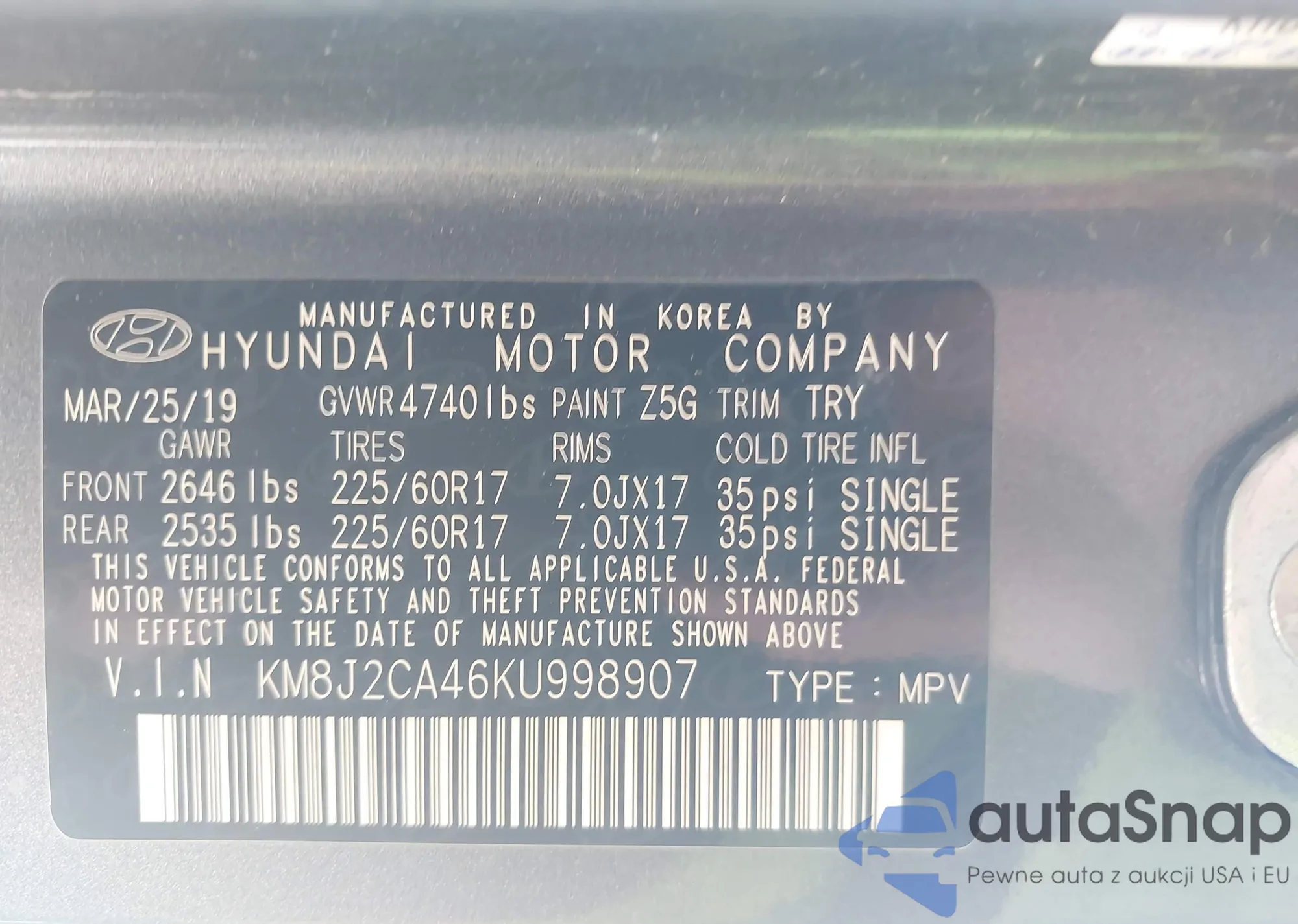 • VIN KM8J2CA42KU939403