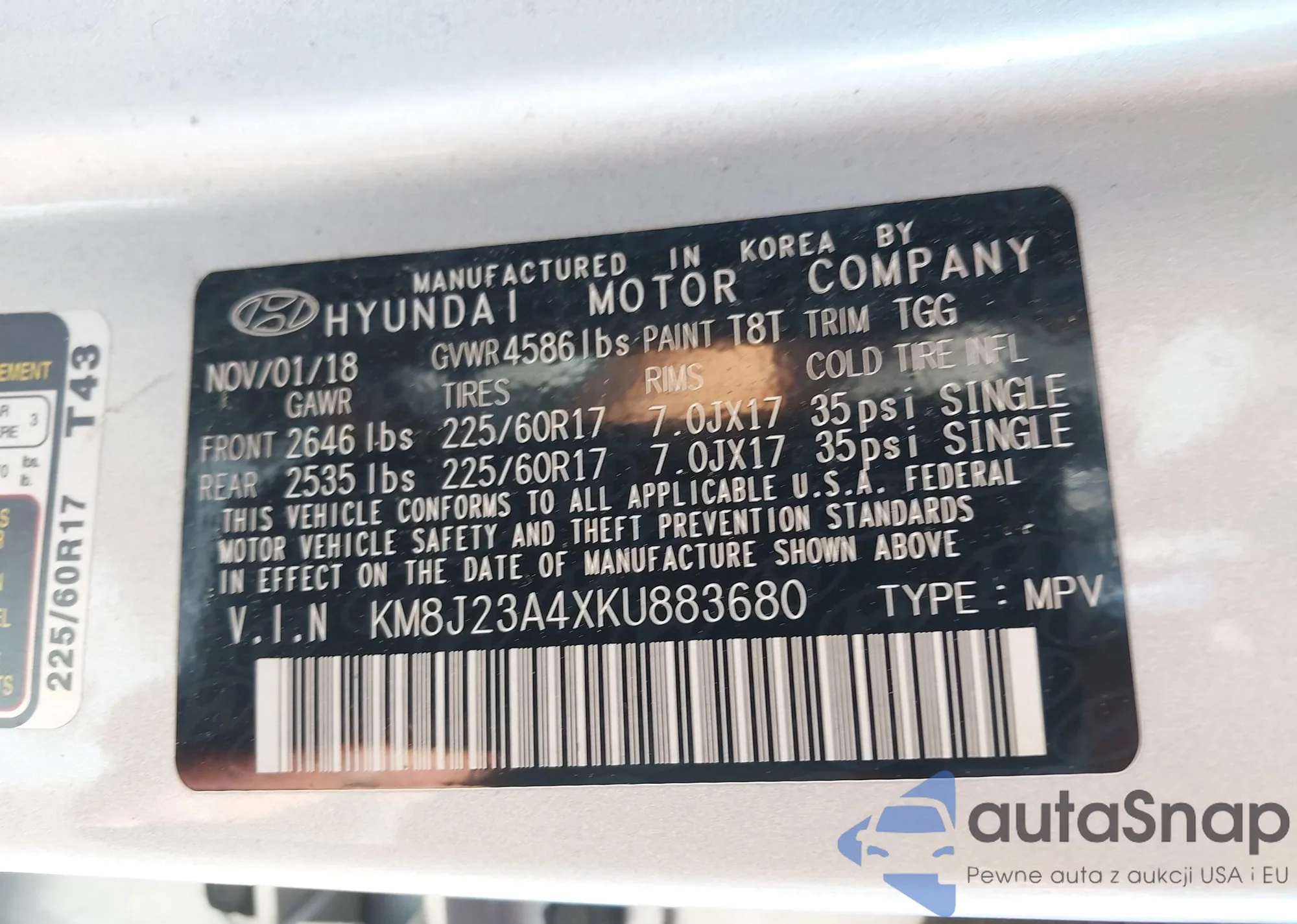 • VIN KM8J2CA43JU702529