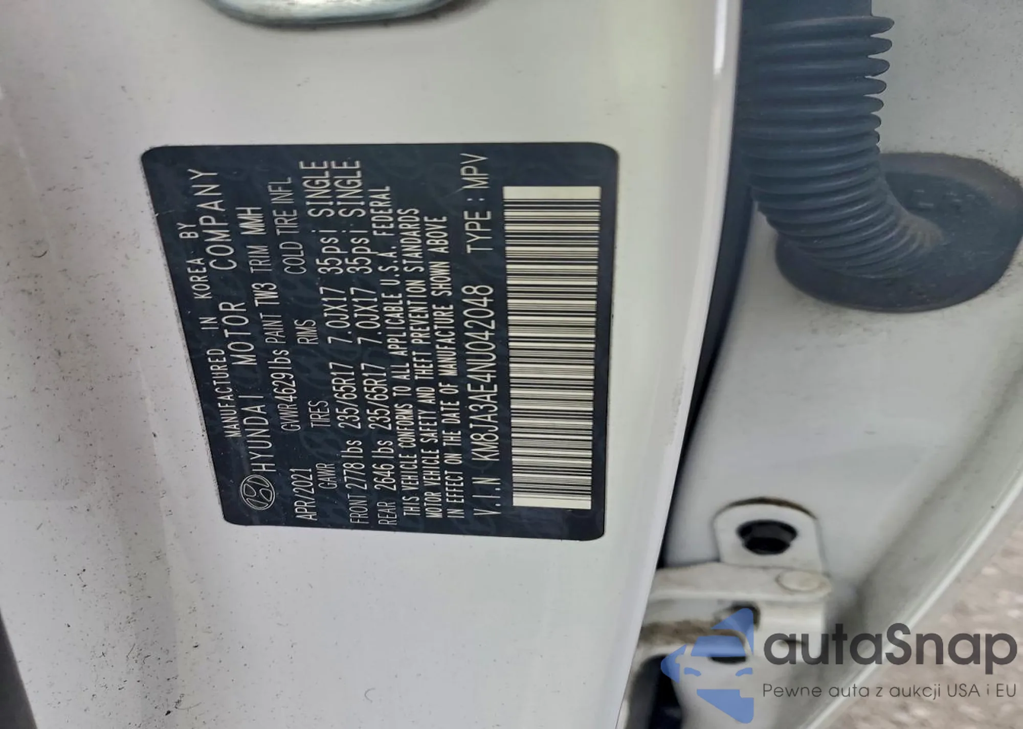 • VIN KM8JA3AE4NU042048
