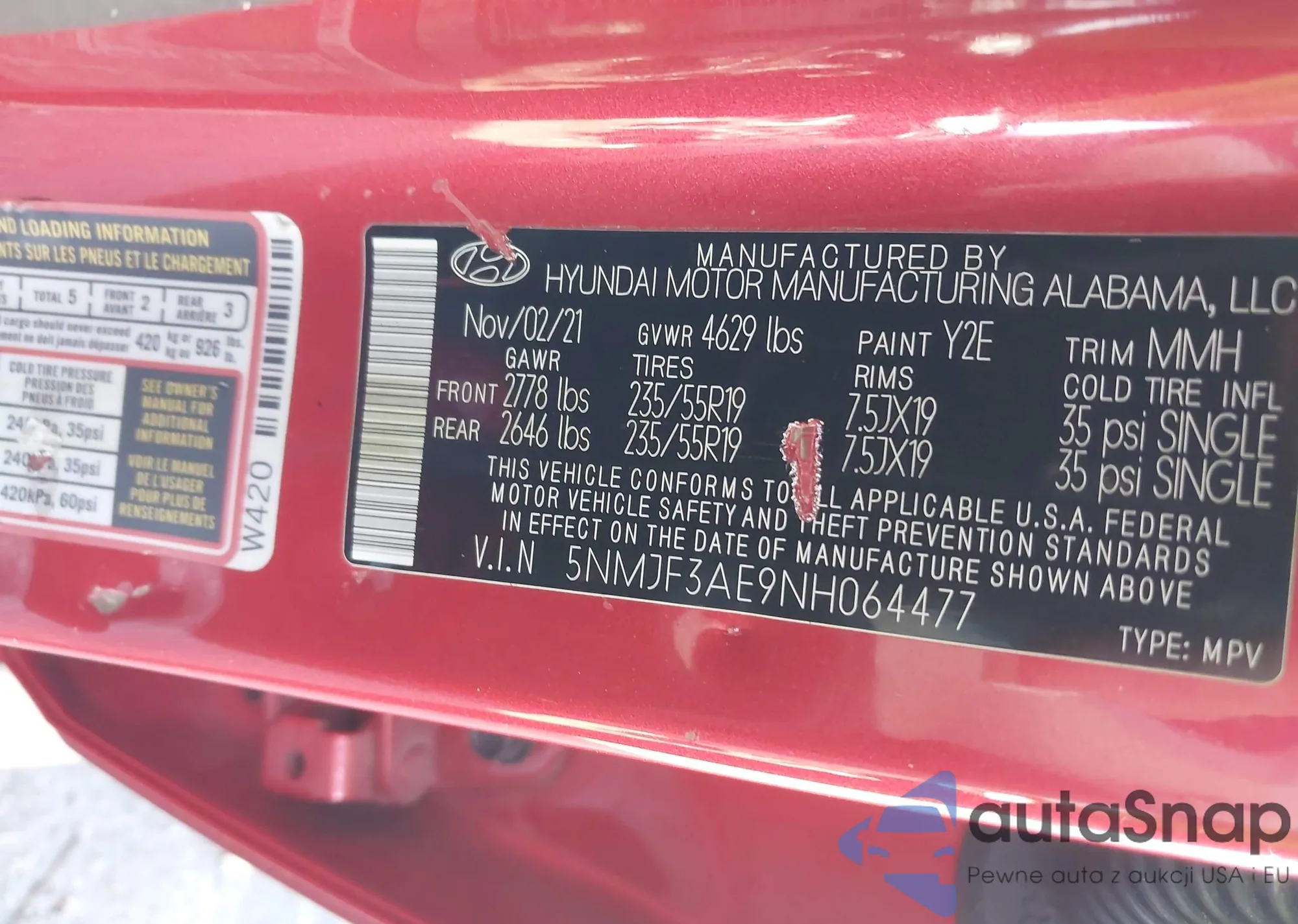 • VIN 5NMJF3AE9NH064477