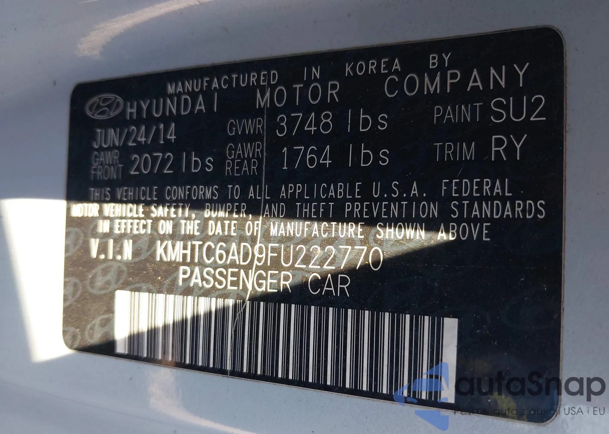 LOT: 44173503 VIN: KMHTC6AD9FU222770