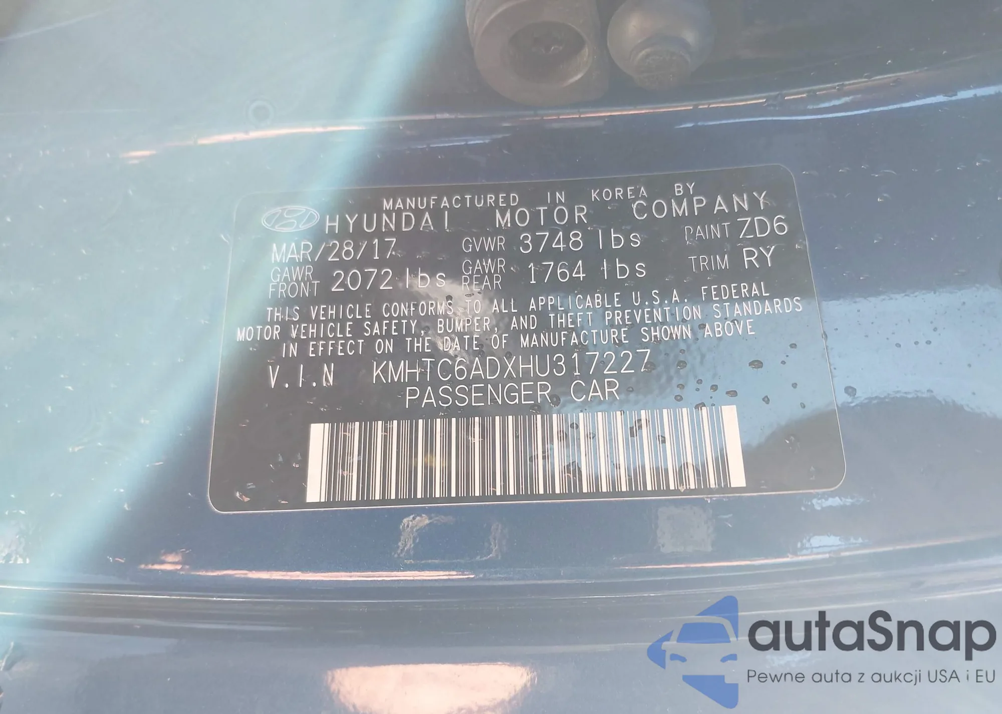 • VIN KMHTC6ADXHU317227