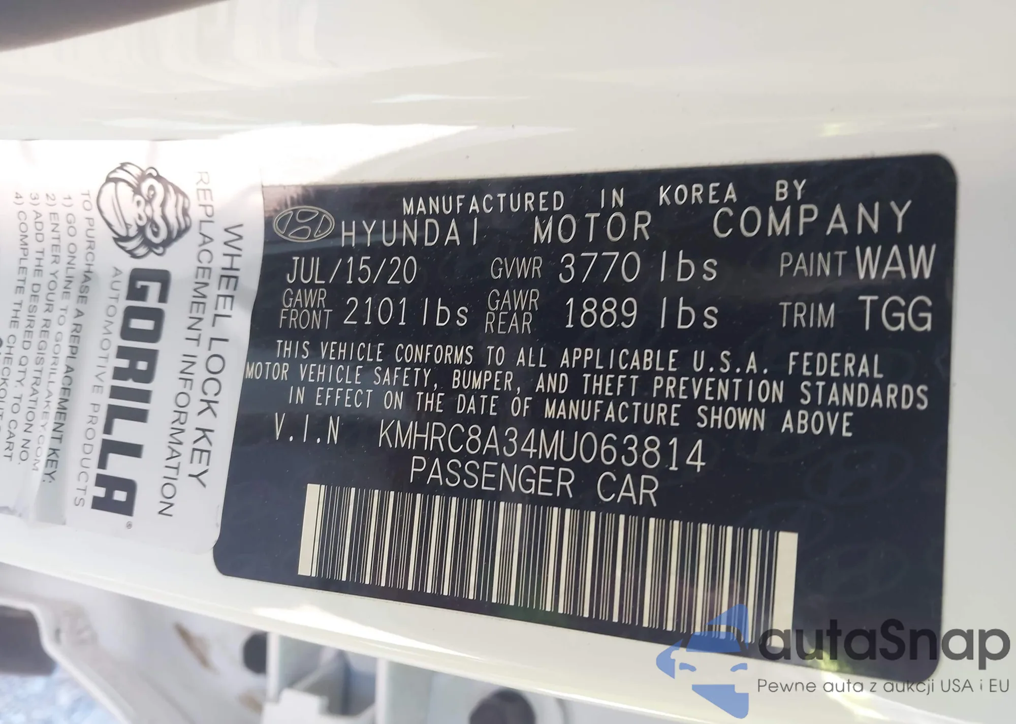 LOT: 44590460 VIN: KMHRC8A37MU081739