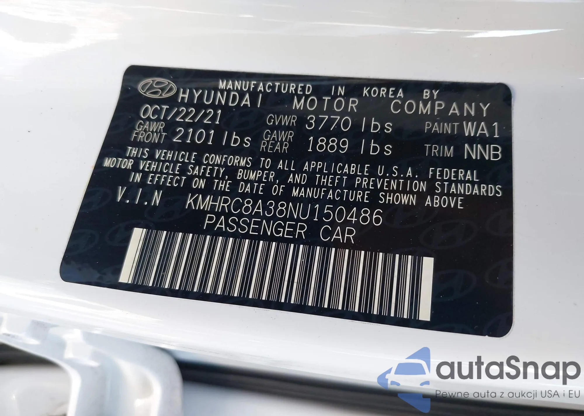 LOT: 44266103 VIN: KMHRC8A38NU150486