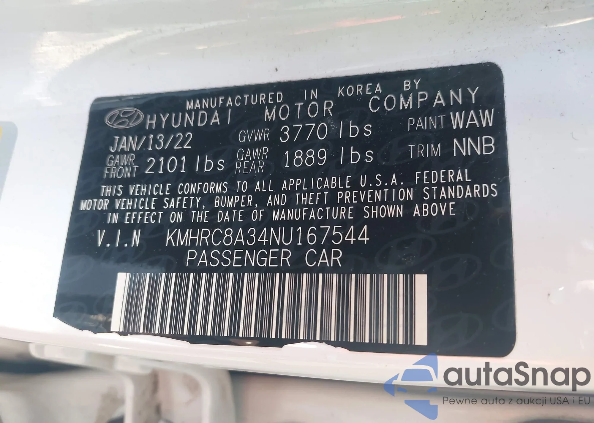 LOT: 44599347 VIN: KMHRB8A37NU152118