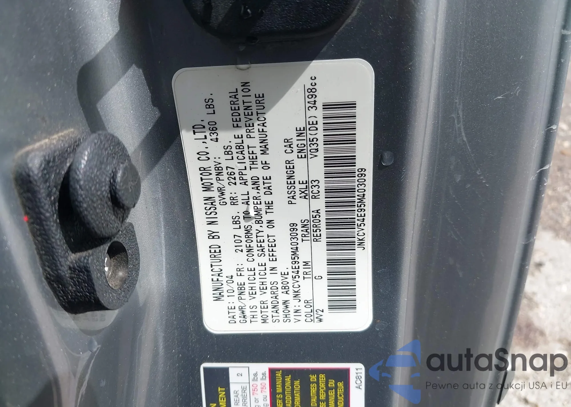 2004 Infiniti G35 из США, поврежденный, VIN JNKCV51E04M109058