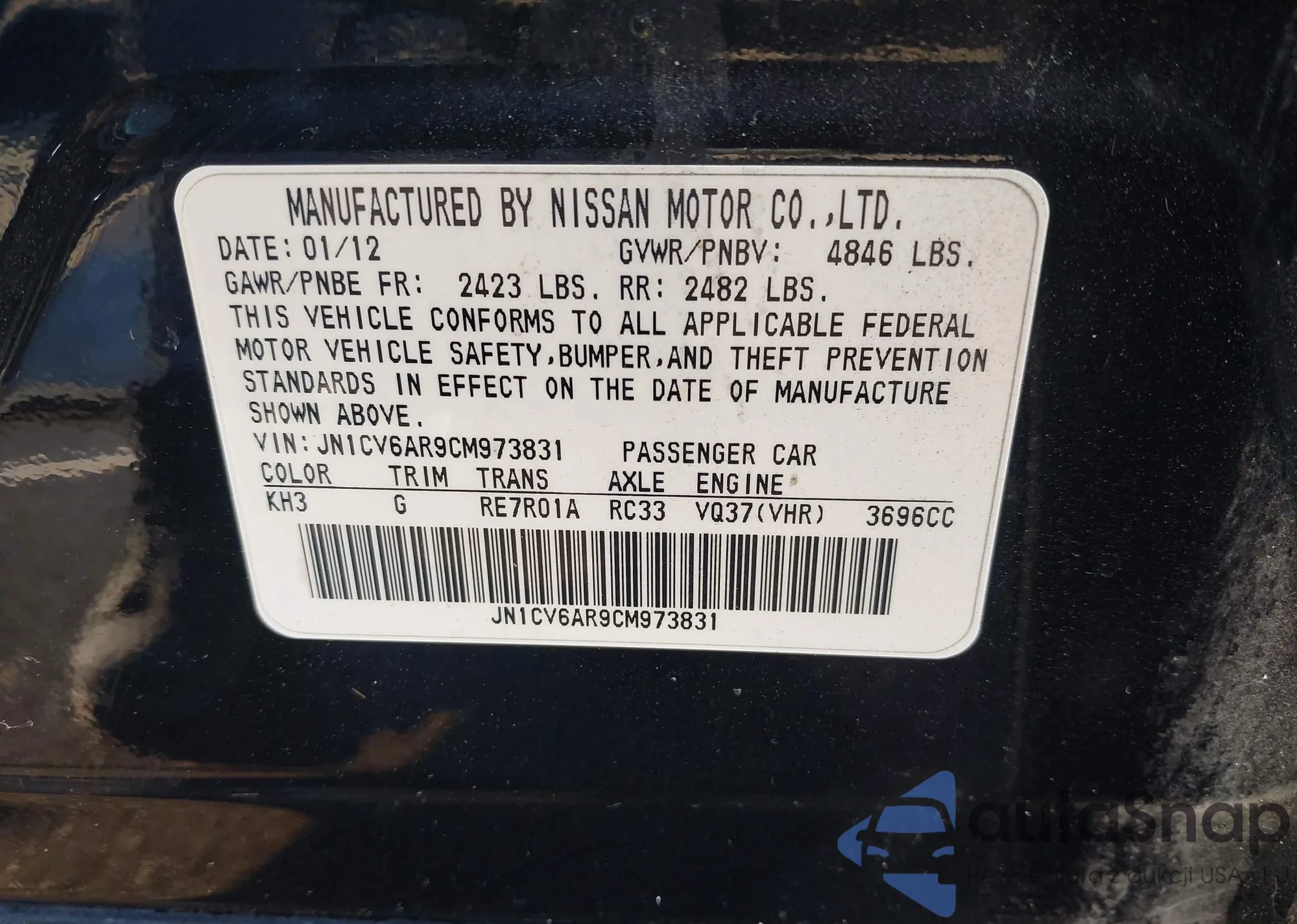 • VIN JN1CV6AR9CM973831