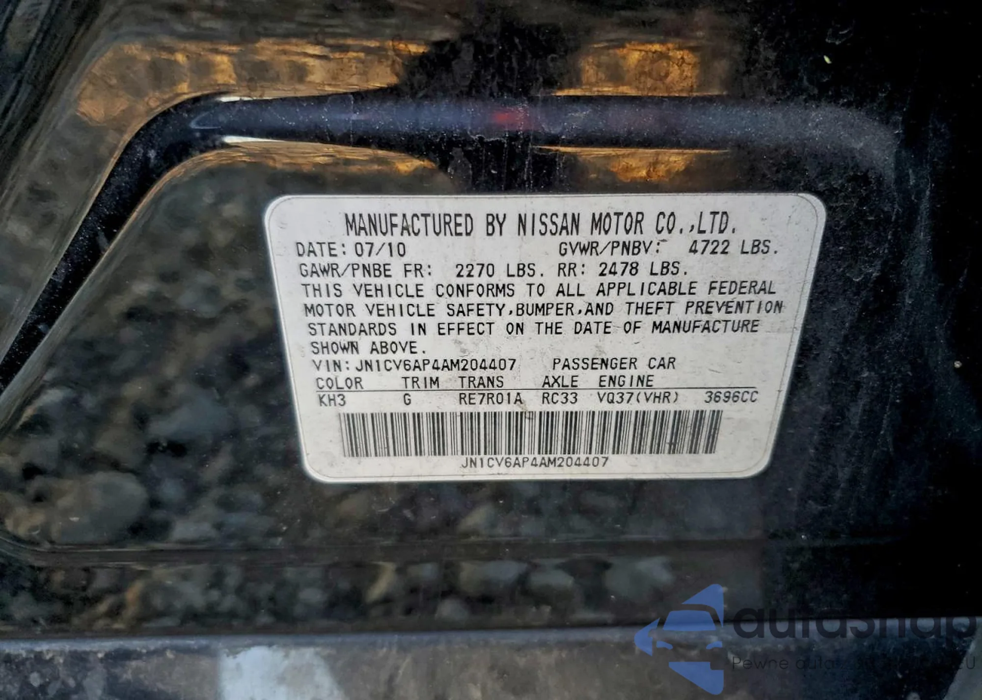 LOT: 96496565 VIN: JN1CV6AP4AM204407