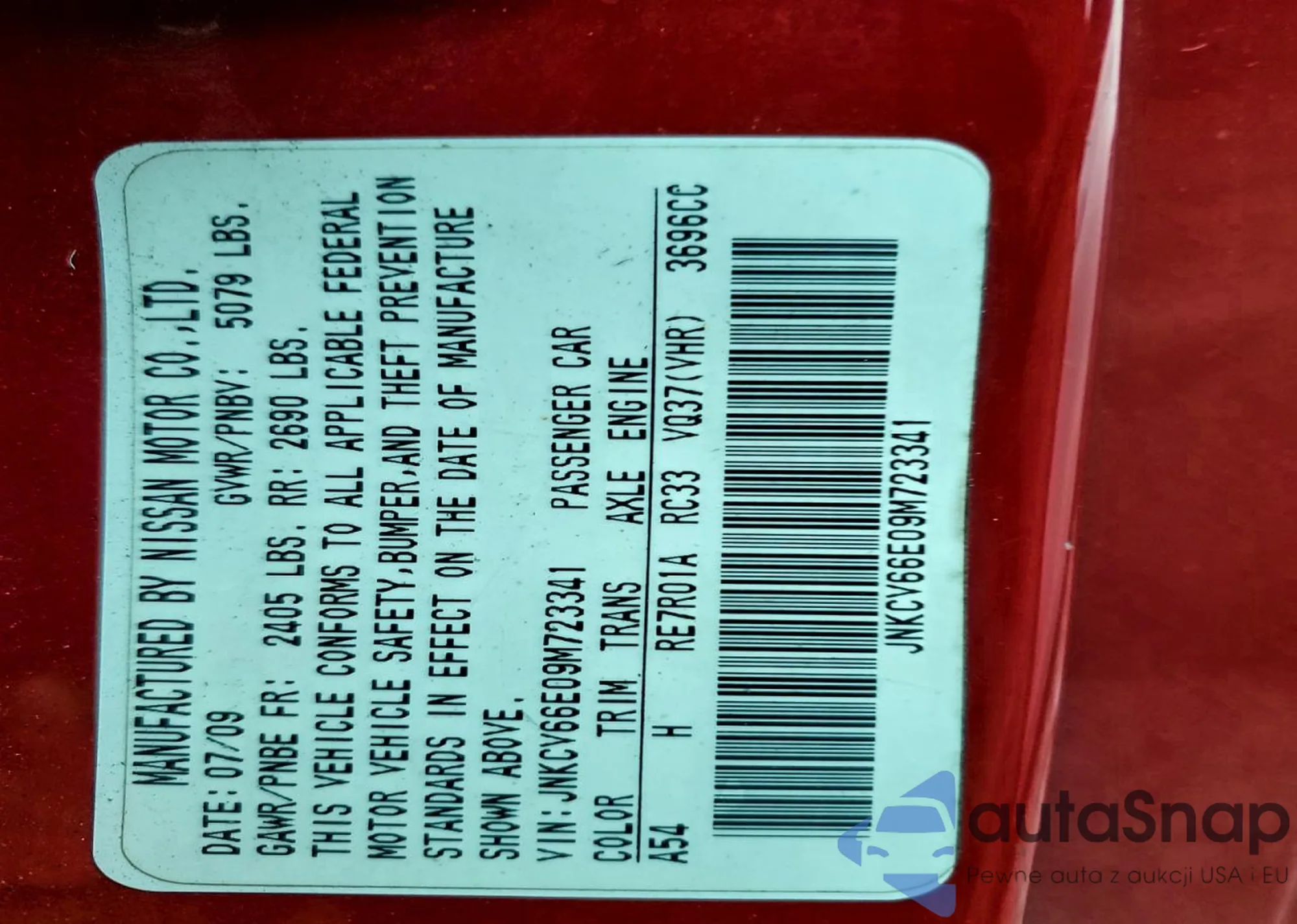 LOT: 43830156 VIN: JNKCV61F99M362644