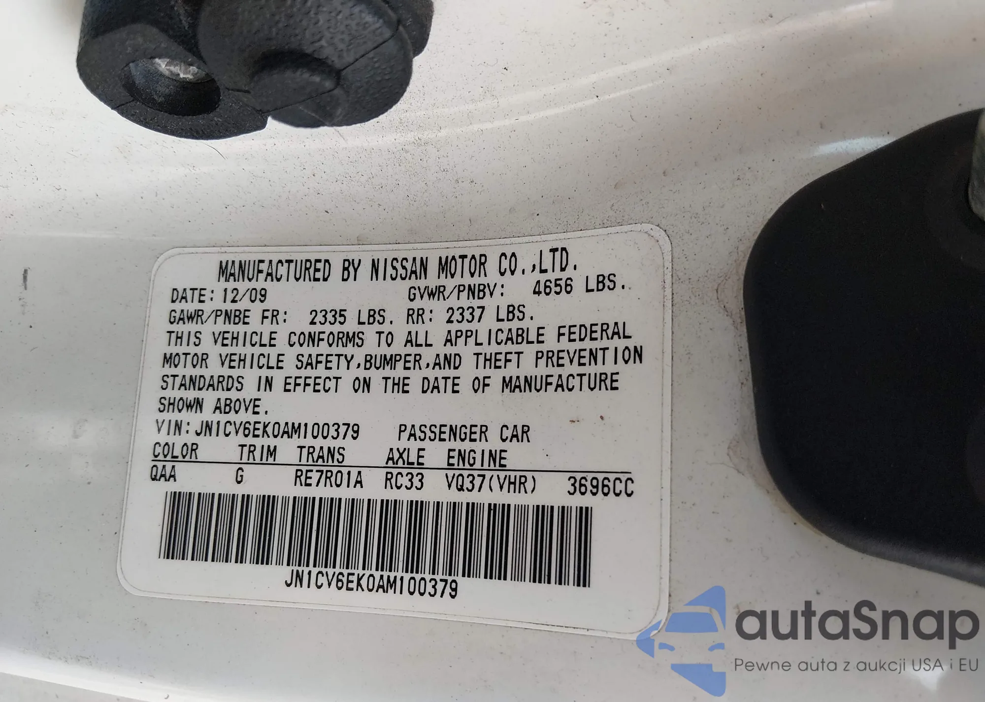 LOT: 44102148 VIN: JN1CV6EK0AM100379