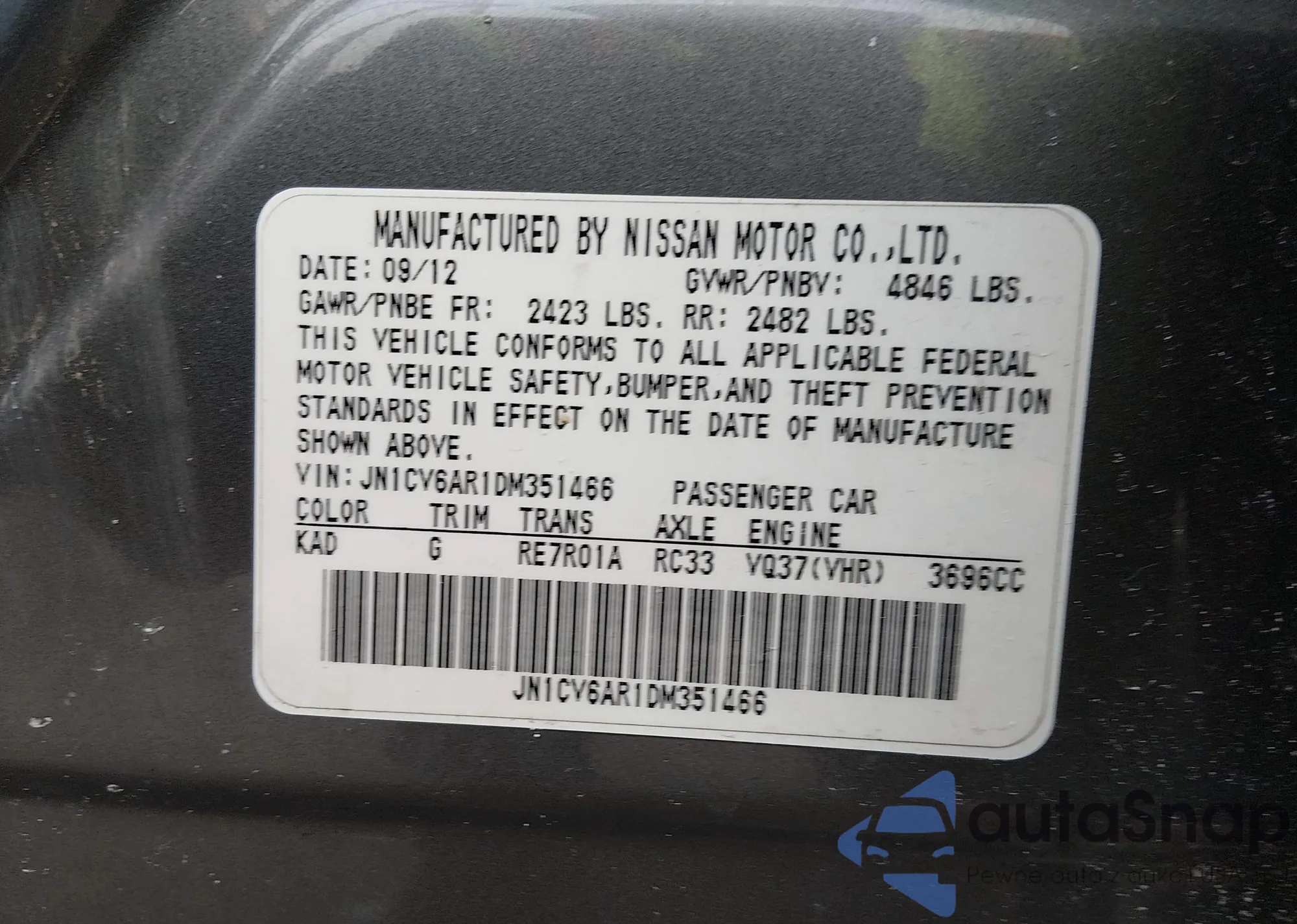• VIN JN1CV6AR1DM351466