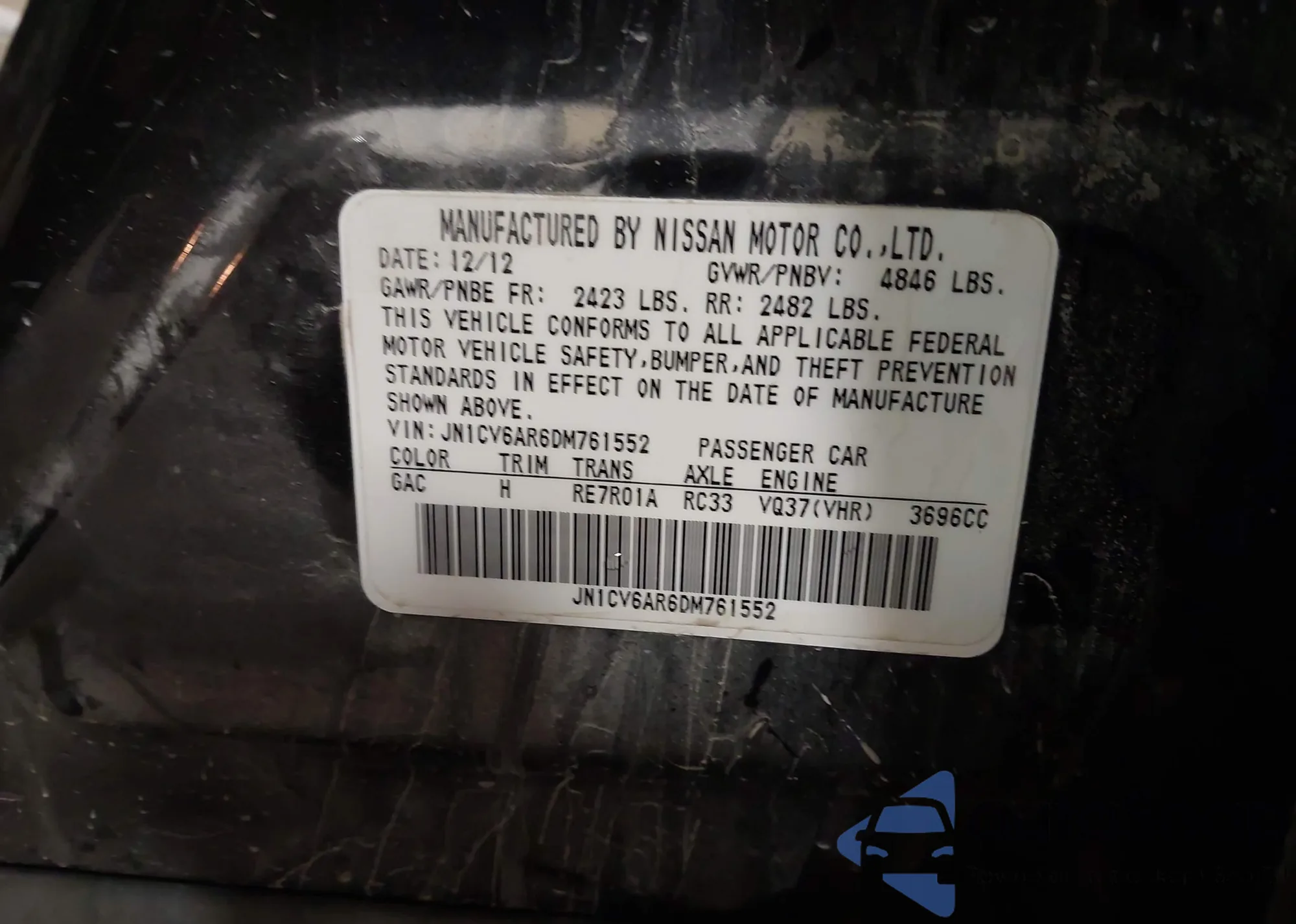 LOT: 44303678 VIN: JN1CV6AR6DM761552