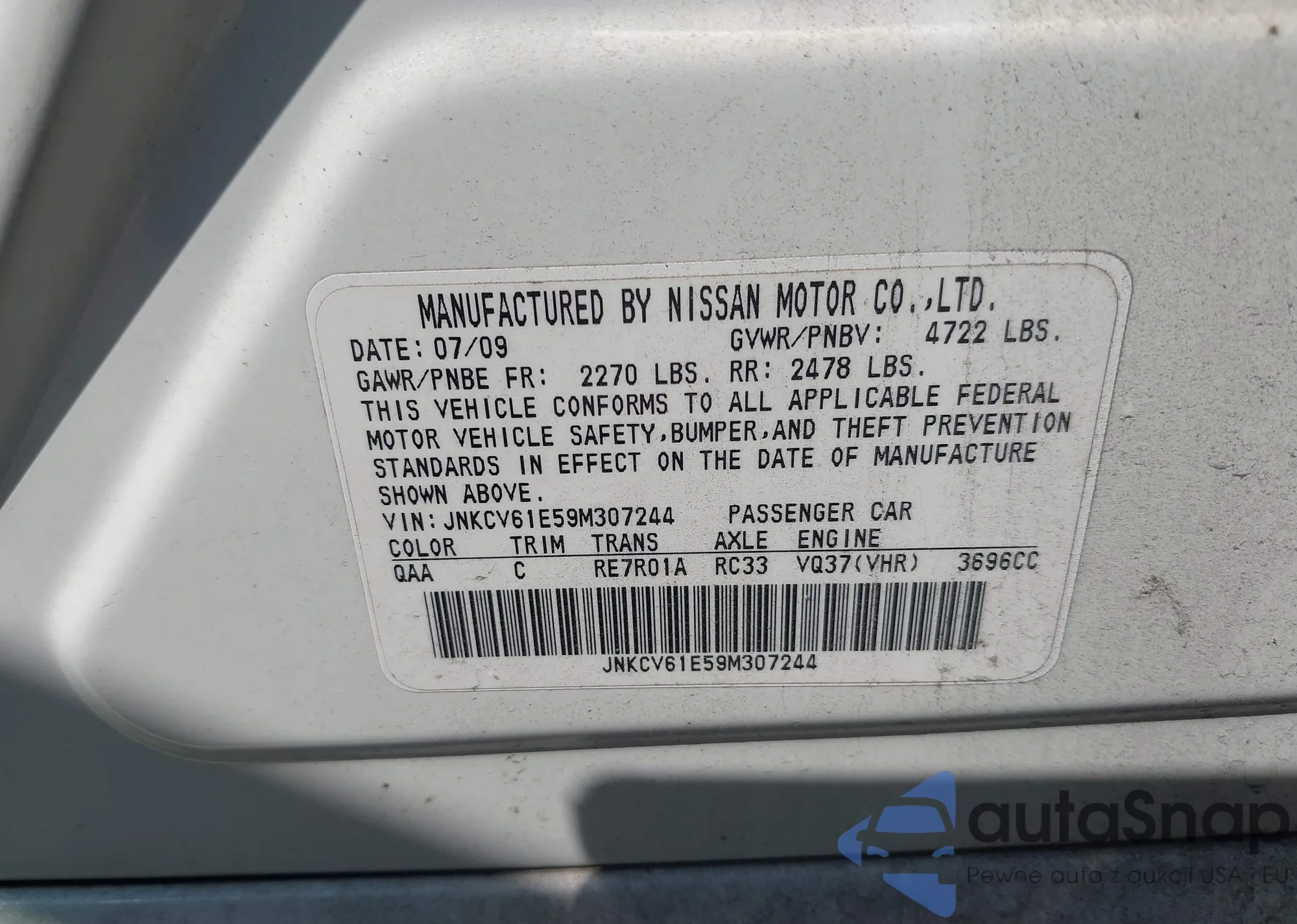 LOT: 43057005 VIN: JNKCV61E59M307244