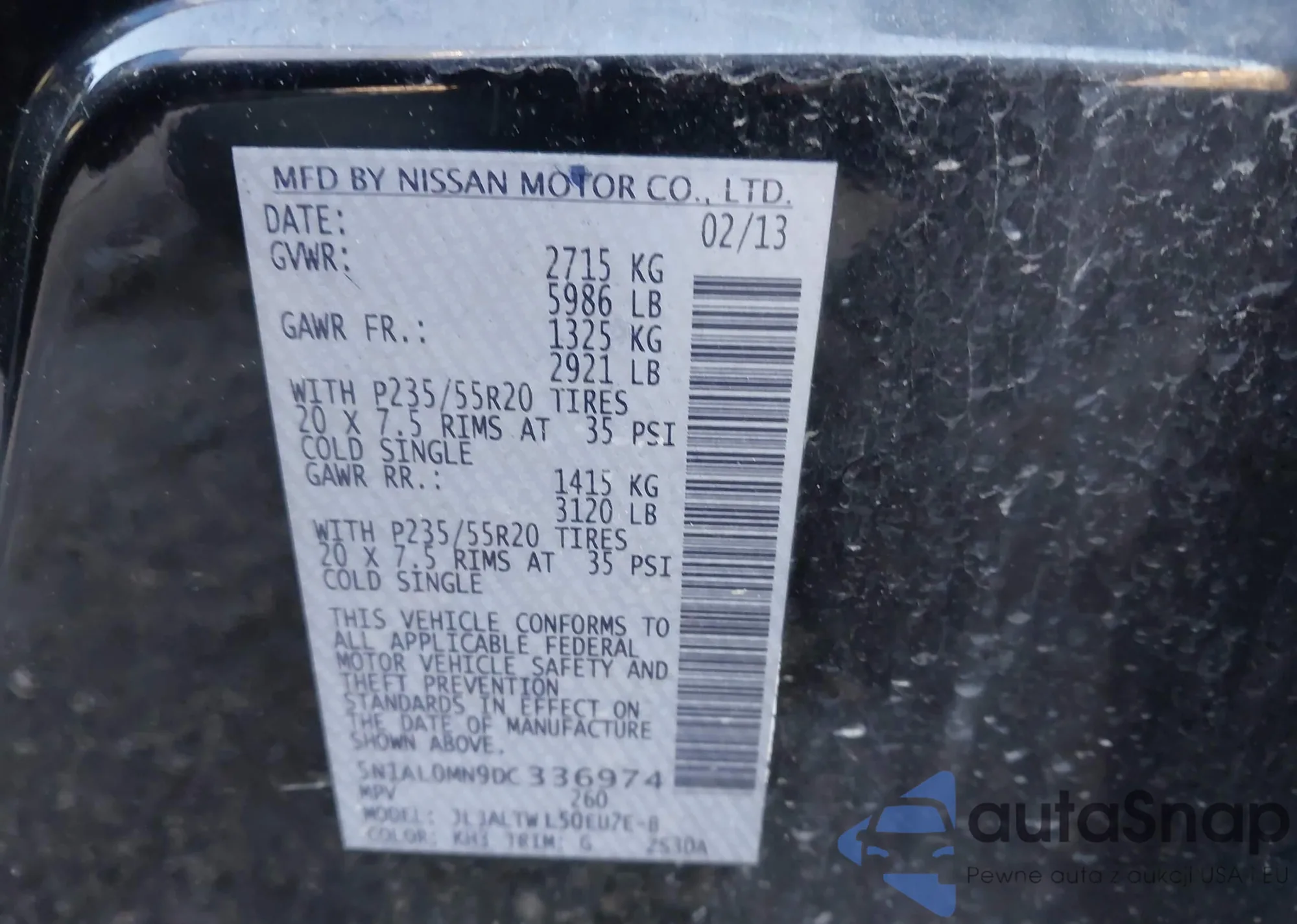 • VIN 5N1AL0MN9DC336974