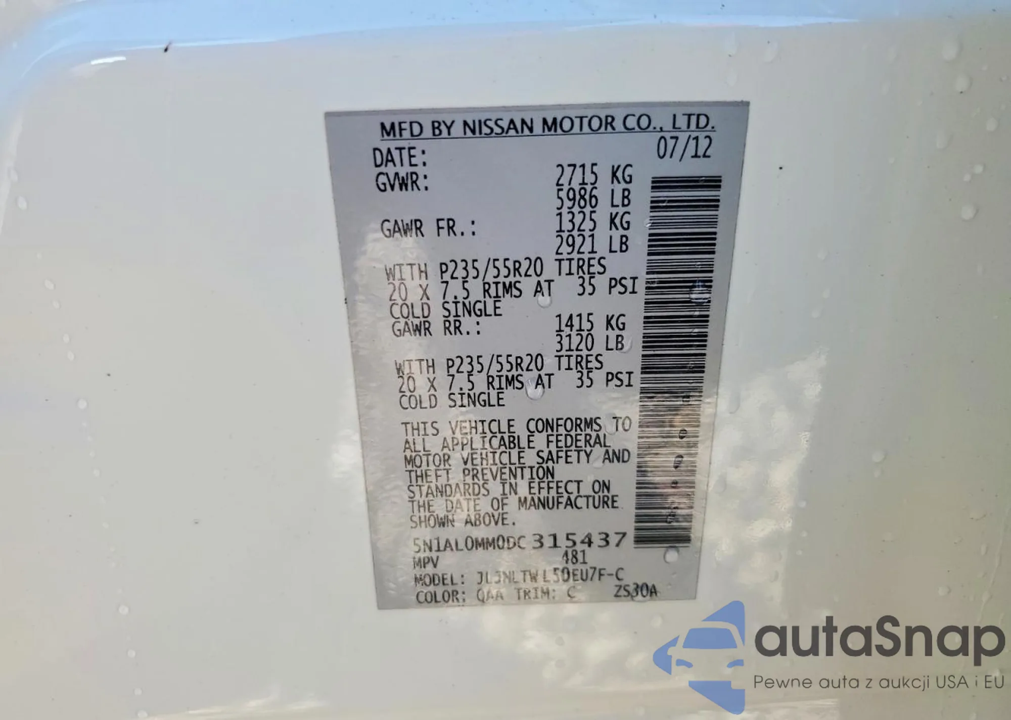 • VIN 5N1AL0MM7DC337239