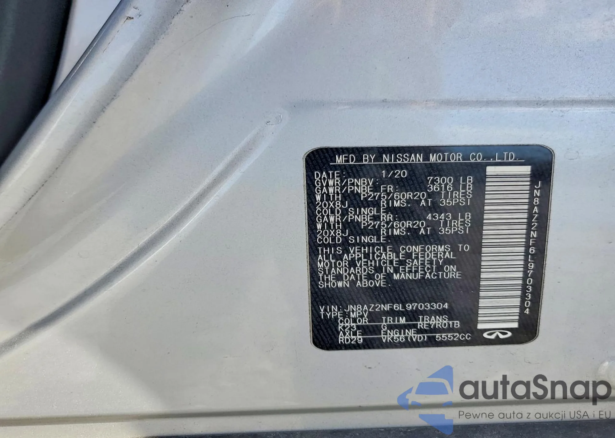 • VIN JN8AZ2NF6L9703304