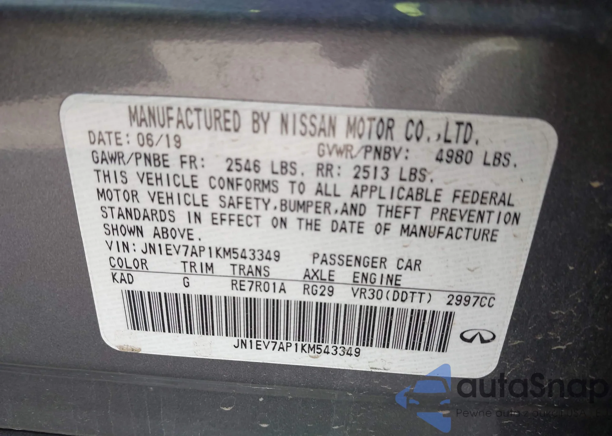 LOT: 44155017 VIN: JN1EV7AP1KM543349