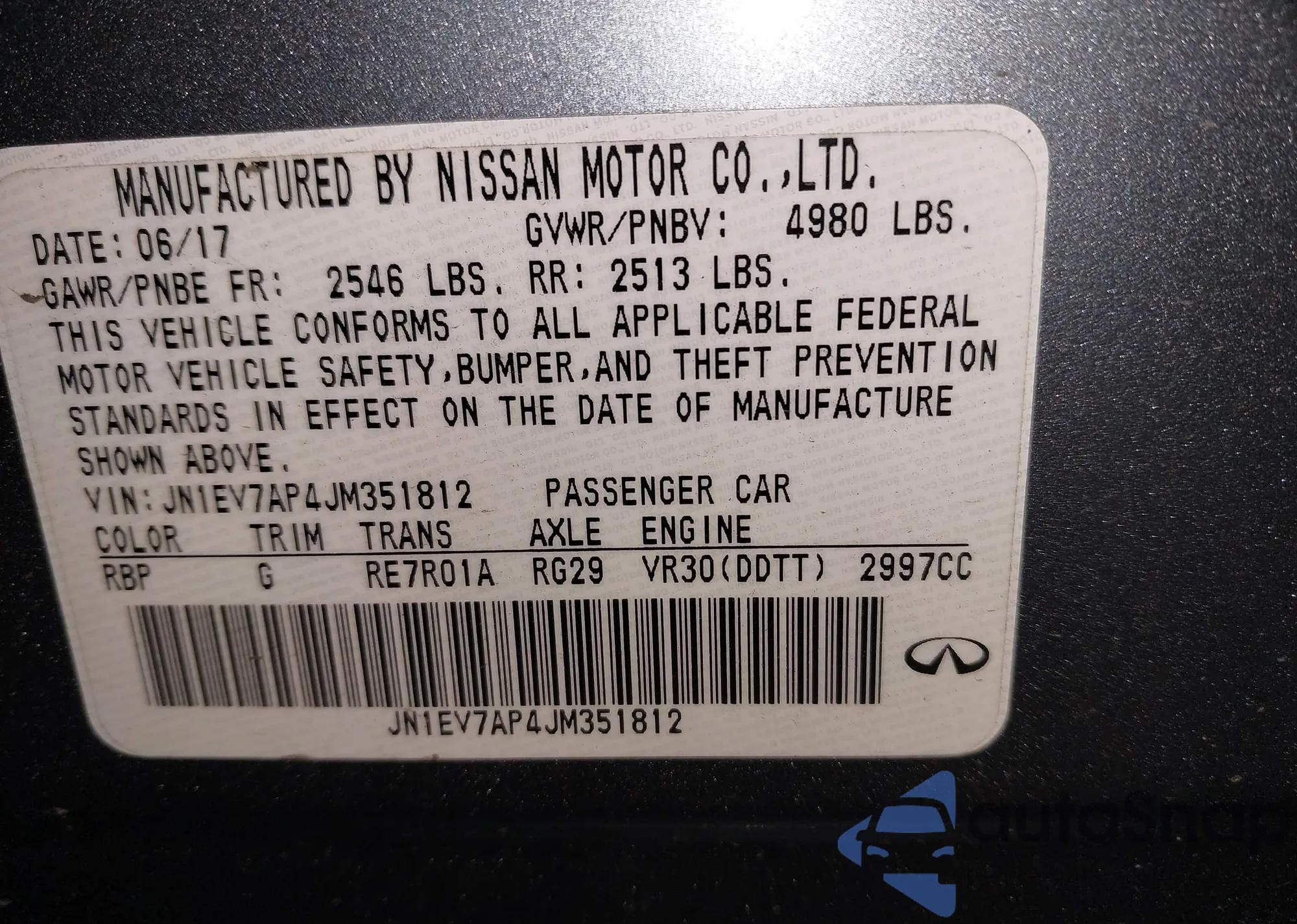 LOT: 99612225 VIN: JN1EV7AR0JM443274