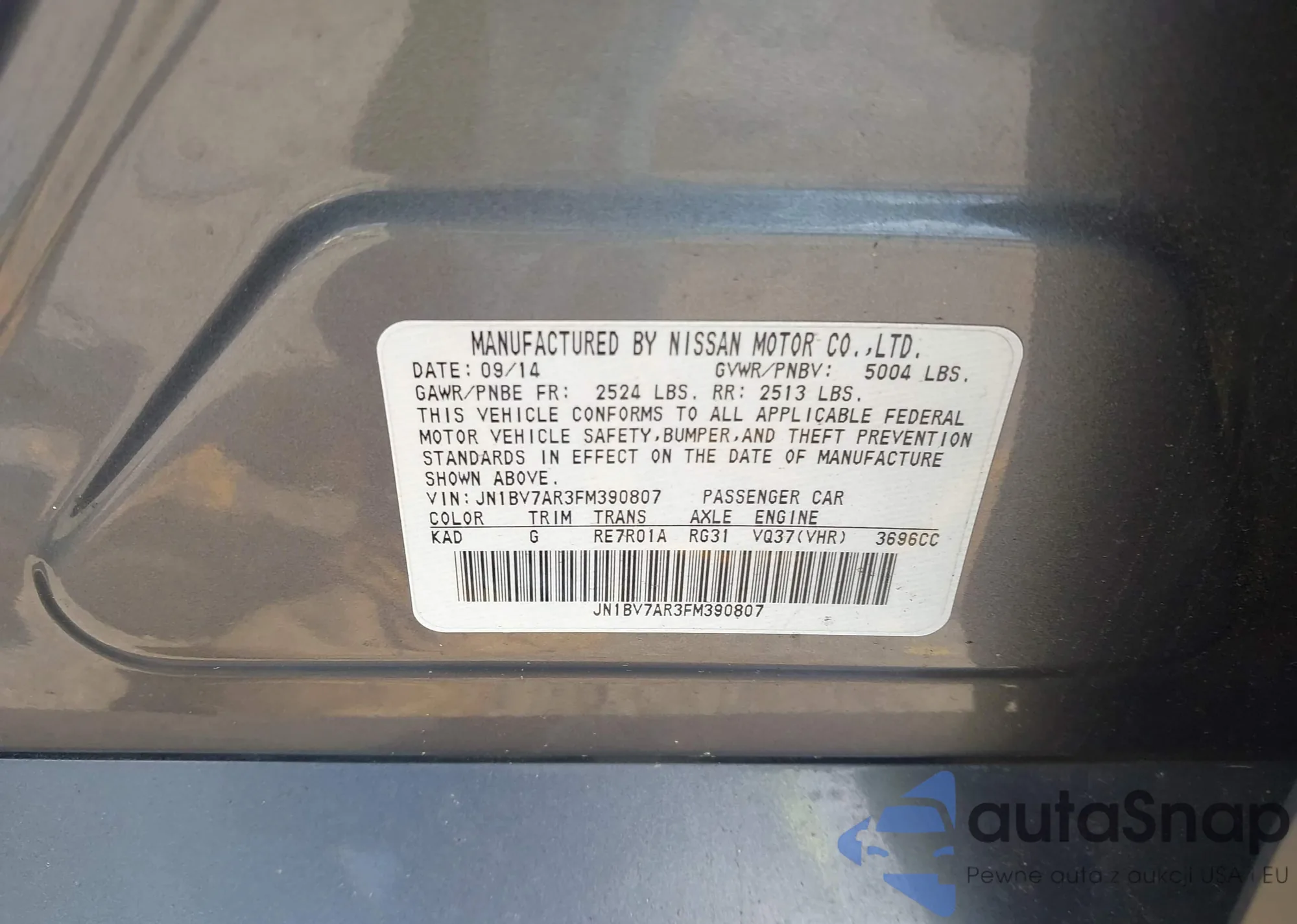 LOT: 44409960 VIN: JN1BV7AR3FM390807