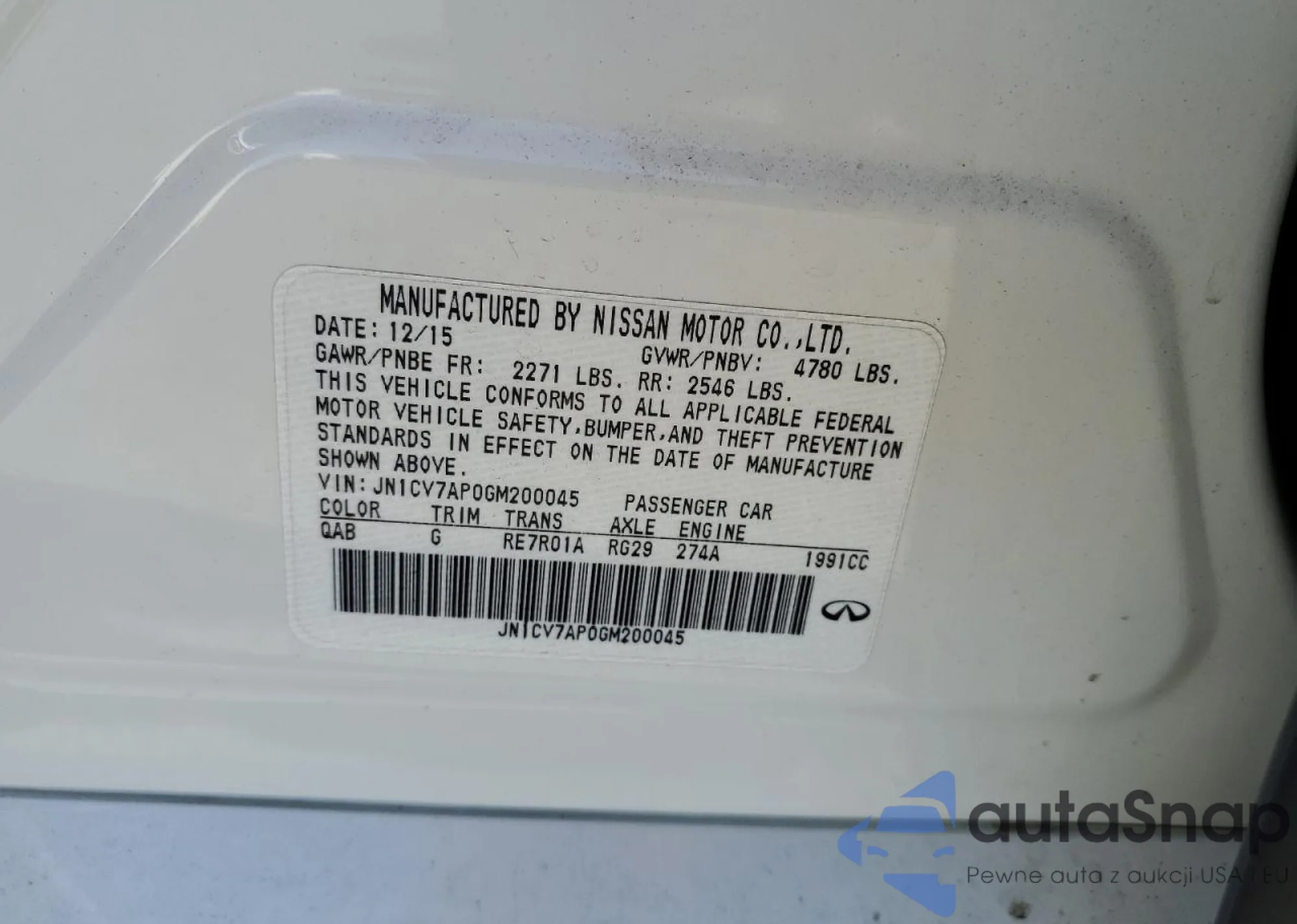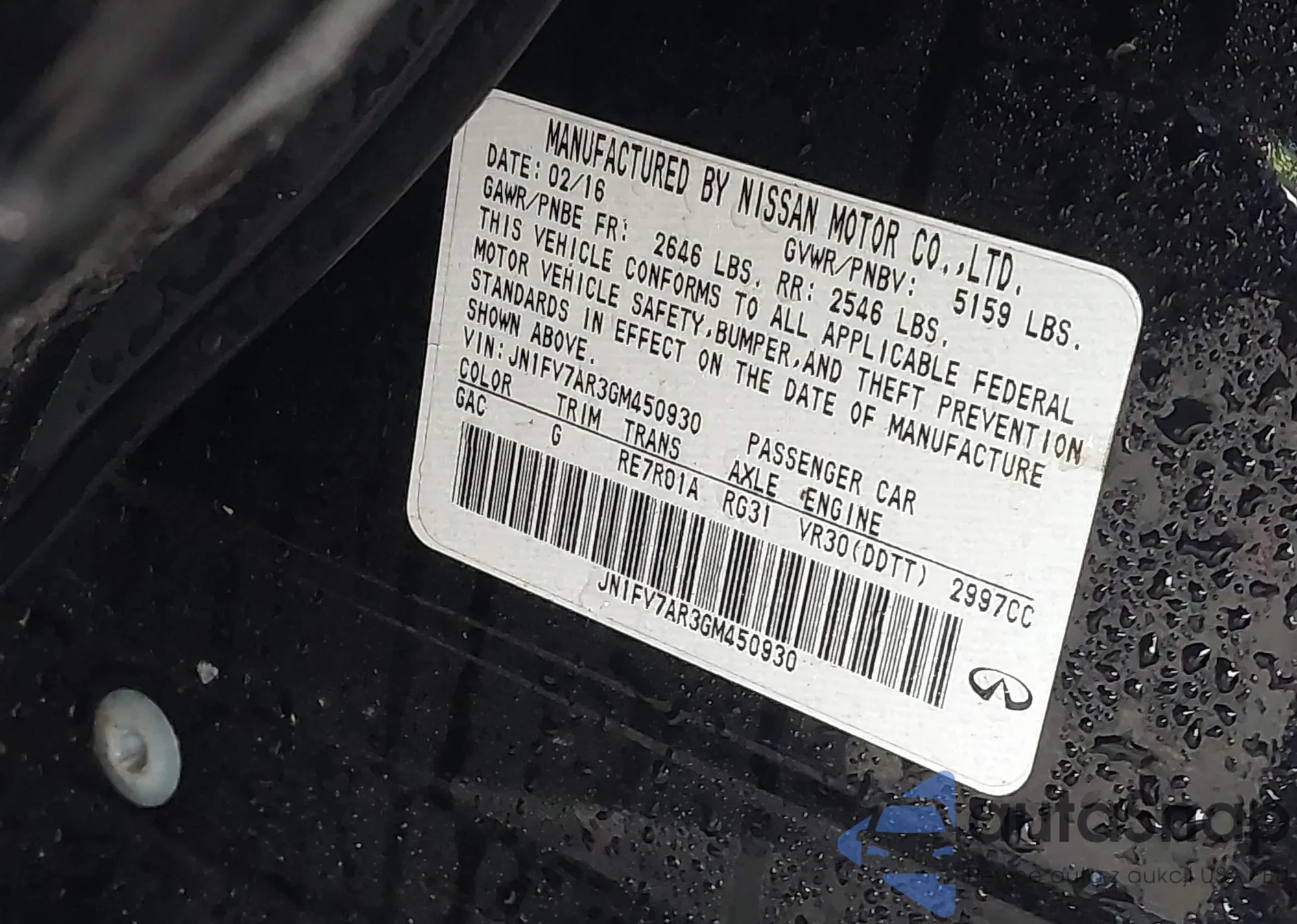 LOT: 68952493 VIN: JN1CV7AP0GM200045