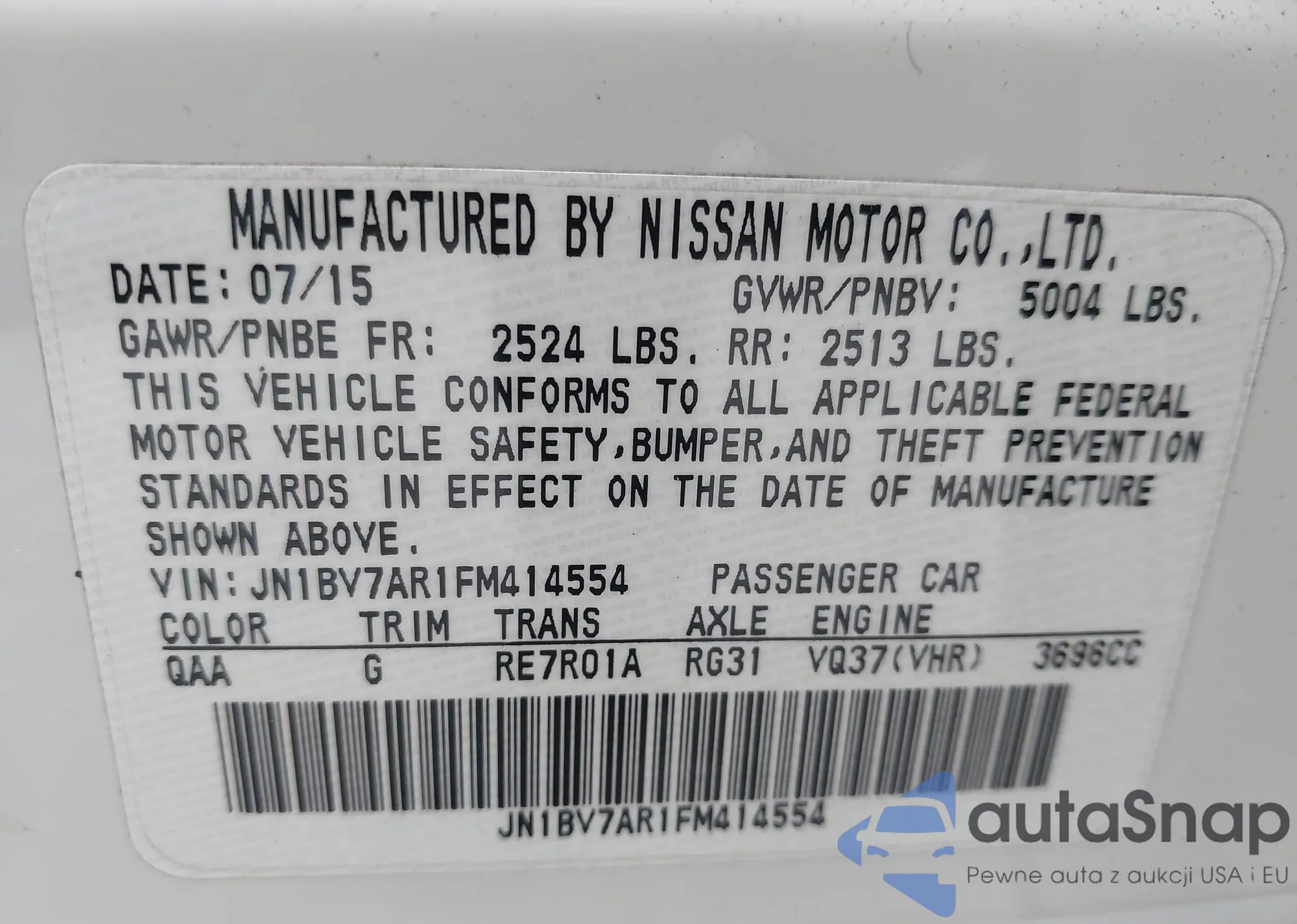 LOT: 43866306 VIN: JN1BV7AR1FM414554