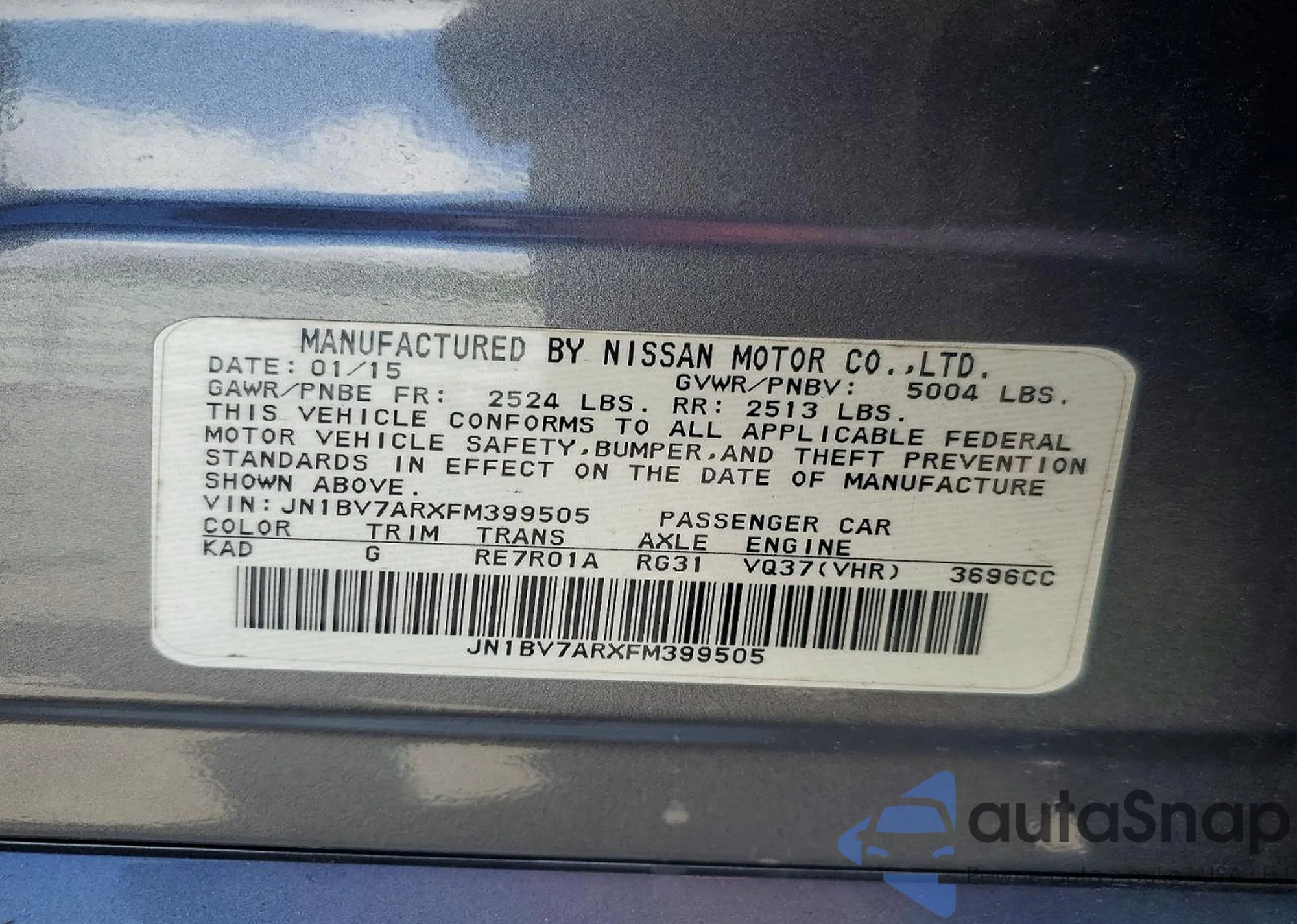 LOT: 47078076 VIN: JN1BV7ARXFM399505