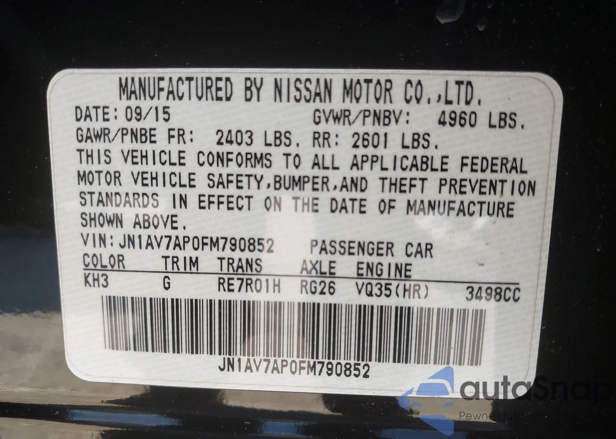 • VIN JN1AV7AP0FM790852
