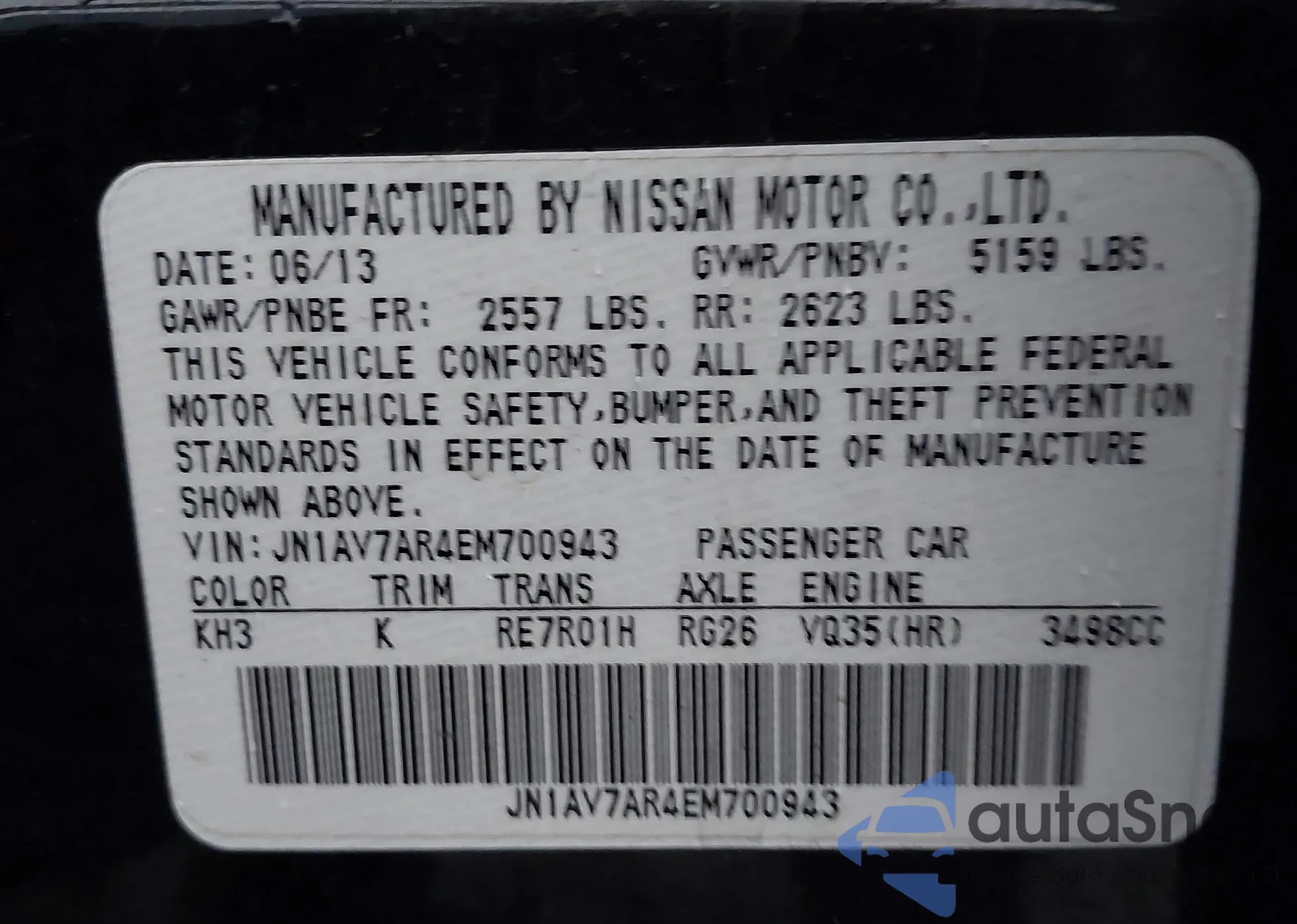 LOT: 44428093 VIN: JN1AV7AR4EM700943