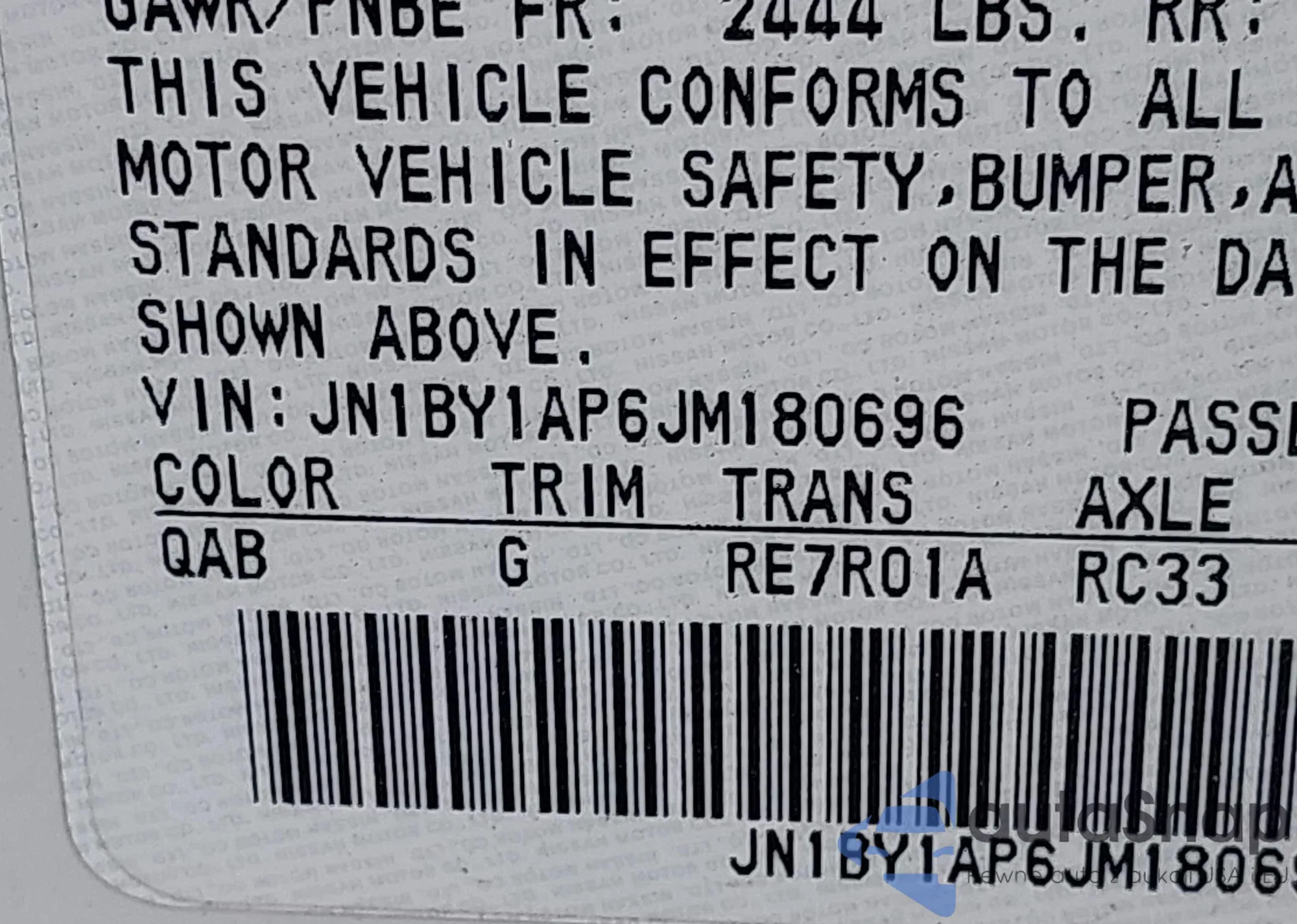 LOT: 44272085 VIN: JN1BY1AP6JM180696