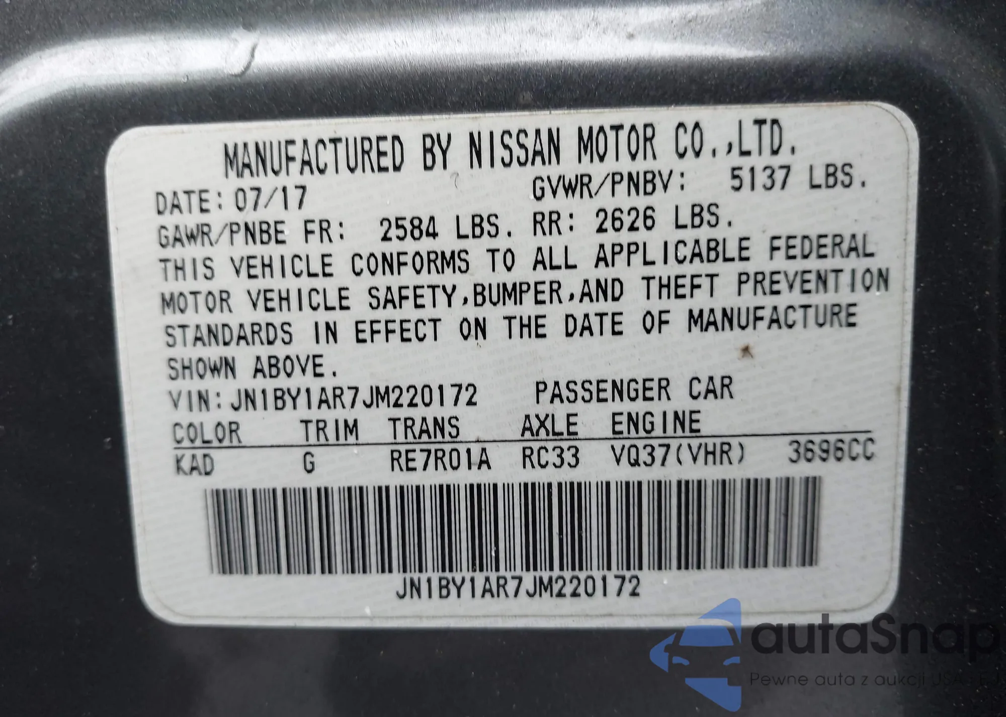 • VIN JN1BY1AR7JM220172