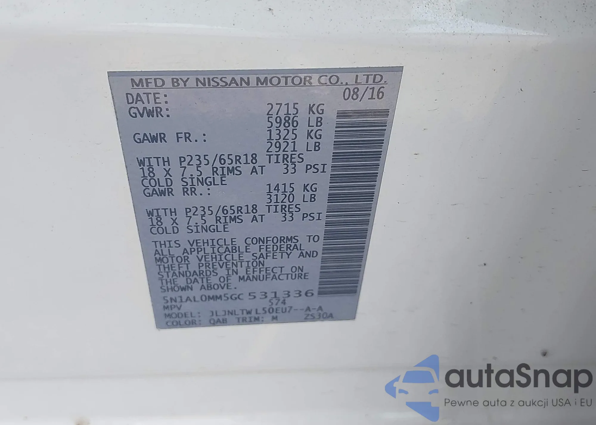 • VIN 5N1AL0MM5GC531336